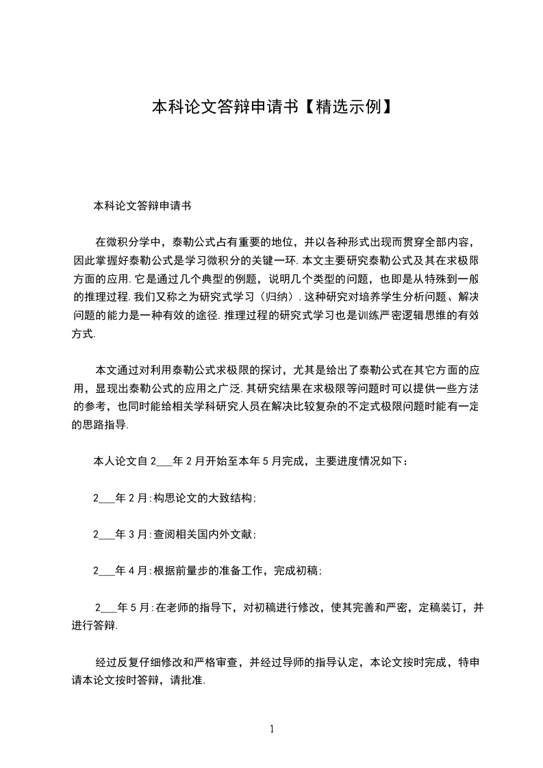 经过反复仔细修改和严格审查,并经过导师的指导认定,本论文按时完成,特申请本论文按时答辩,请批准.