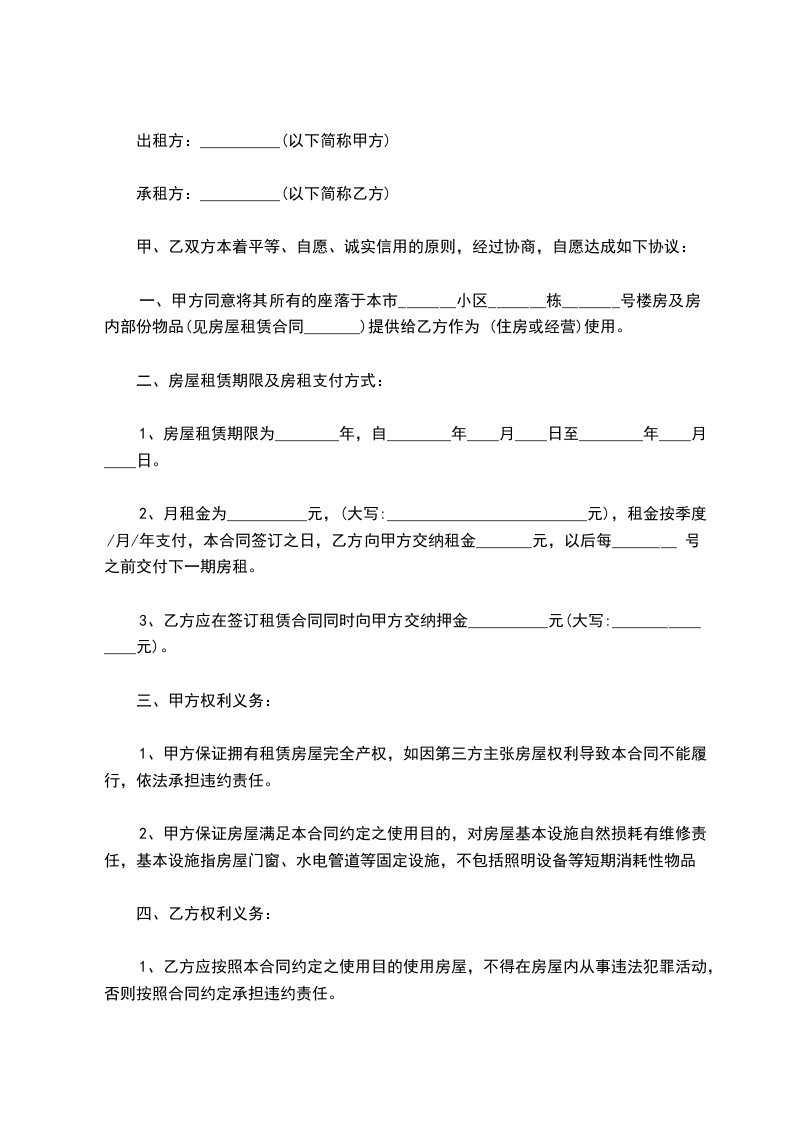 二、乙方在租住期间必须遵守本小区有关消防安全,综合治理。环境卫生等其他管理规定,不得从事非办公等其他包括“黄赌毒”在内的一切有碍邻居正常生活的违法违规违约活动,否则一切后果有乙方承担。