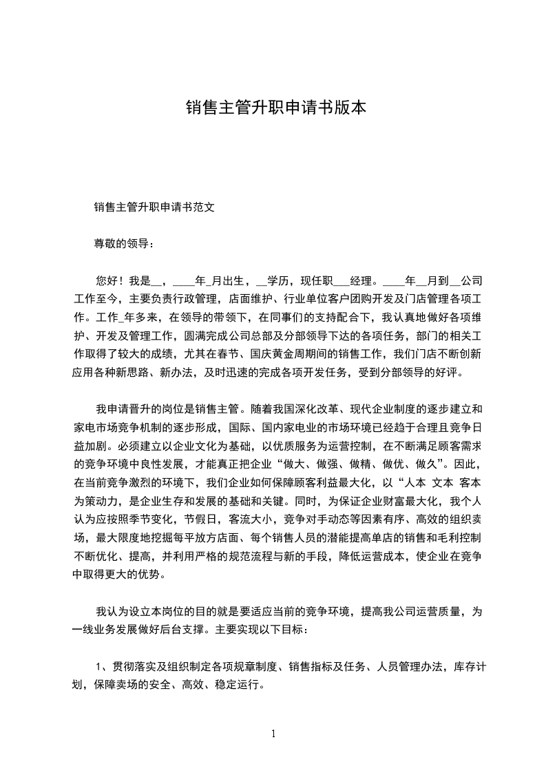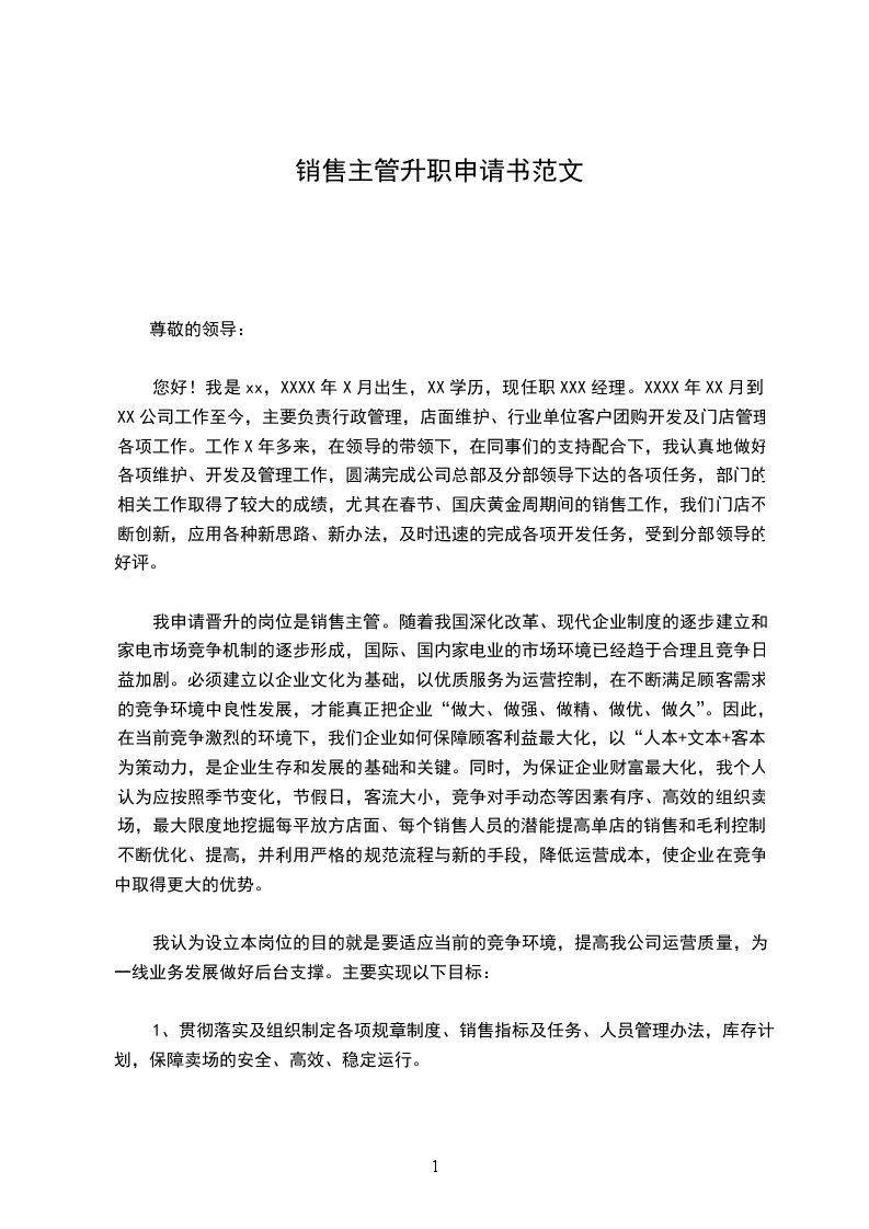 我申请晋升的岗位是销售主管。随着我国深化改革、现代企业制度的逐步建立和家电市场竞争机制的逐步形成,国际、国内家电业的市场环境已经趋于合理且竞争日益加剧。必须建立以企业文化为基础,以优质服务为运营控制,在不断满足顾客需求的竞争环境中良性发展,才能真正把企业“做大、做强、做精、做优、做久”。因此,在当前竞争激烈的环境下,我们企业如何保障顾客利益最大化,以“人本+文本+客本”为策动力,是企业生存和发展的基础和关键。同时,为保证企业财富最大化,我个人认为应按照季节变化,节假日,客流大小,竞争对手动态等因素有序、高效的组织卖场,最大限度地挖掘每平放方店面、每个销售人员的潜能提高单店的销售和毛利控制,不断优化、提高,并利用严格的规范流程与新的手段,降低运营成本,使企业在竞争中取得更大的优势。