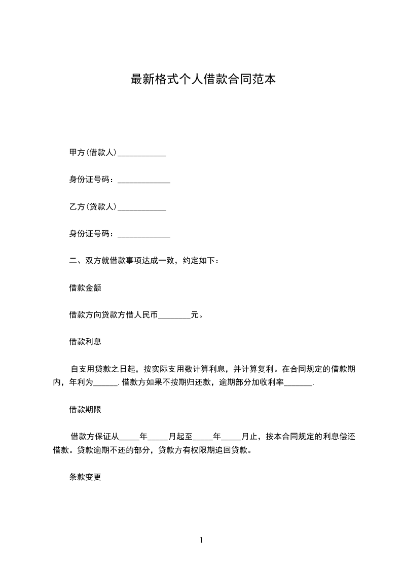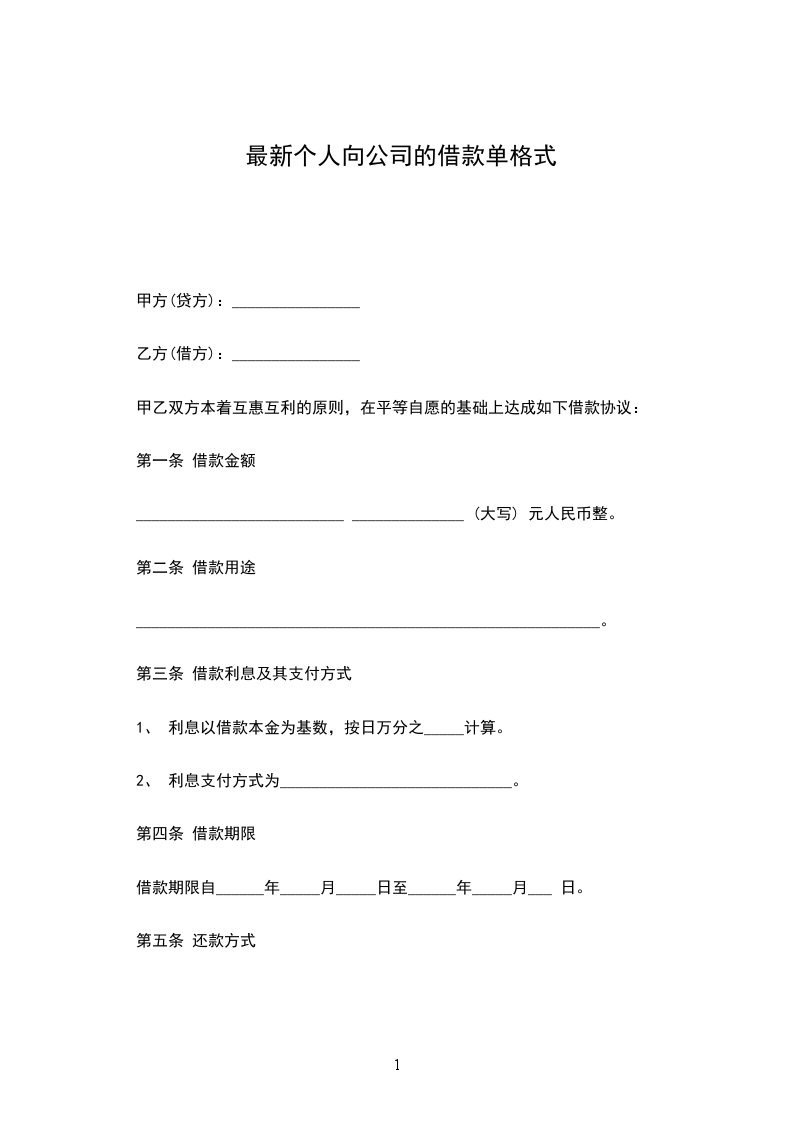 一、甲方愿贷与乙方人民币__________元整,于订立本约之同时,由甲方给付乙方,不另立据。
