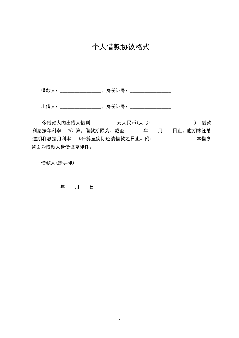 三、利息每万元月息________元,乙应于每月____日给付甲方,不得拖欠。