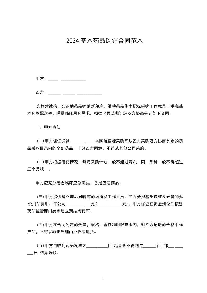为构建诚信、公正的药品购销新秩序,维护药品集中招标采购工作成果,提高基本药物配送率,满足临床用药需求,根据《民法典》经双方协商签订如下合同:
