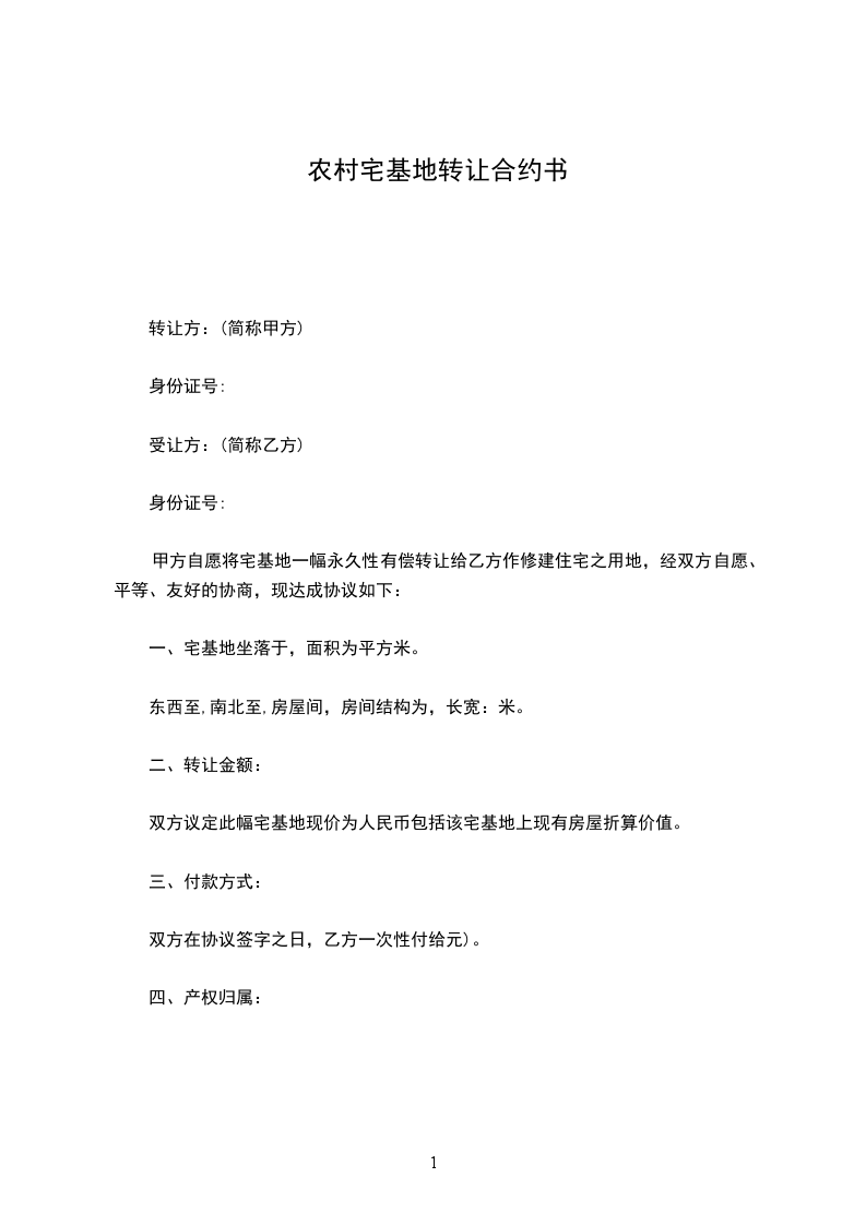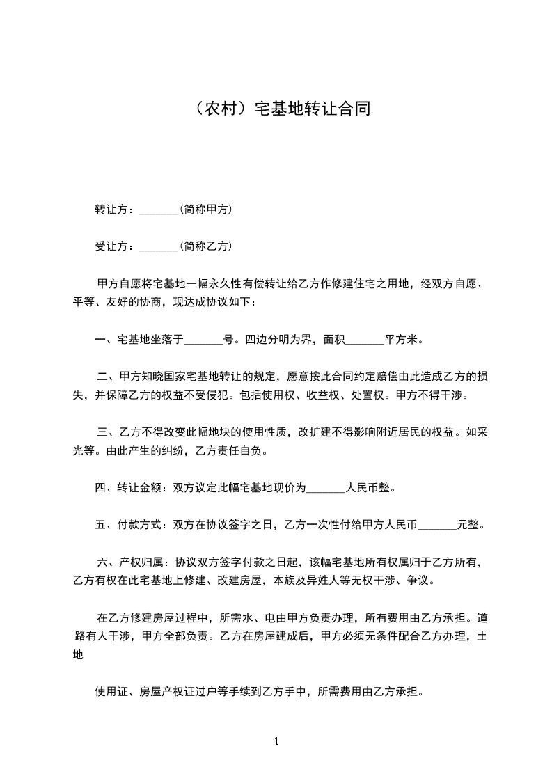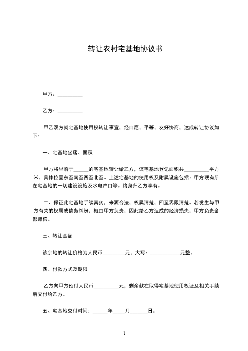 一、甲方转让的宅基地位置为_____________,该宅基地登记面积共___平方米;
