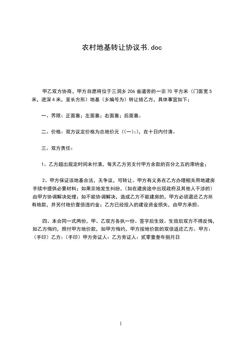 八、甲方违反本协议导致宅基地不能过户或无故进行交付,甲方应支付给乙方违约金___万元;乙方未按本协议付款,乙方应支付给甲方违约金___万元。九、本协议一式二份,各方各执一份。自甲、乙双方签字后生效,未尽事宜双方协商解决。