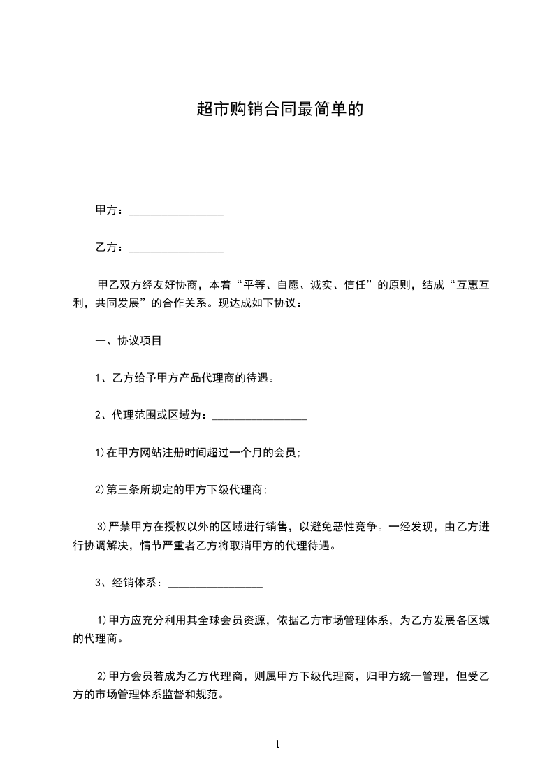 1、购买权:_________________甲方在协议期内从乙方购买指定产品享有相对于非授权代理商和其它区域代理商有优先购买权。
