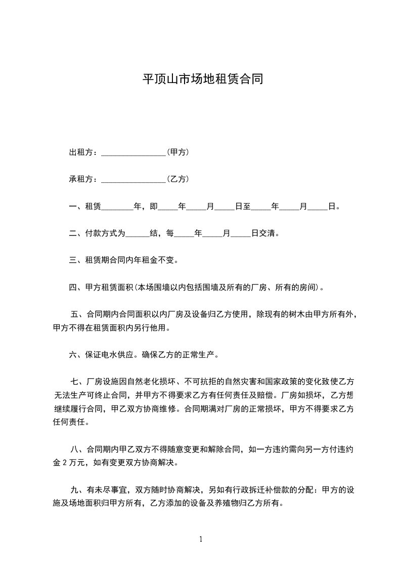 1.2上款所称房屋是指由甲方出租给乙方使用的场地、房屋及其配套设施。