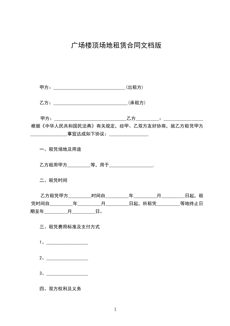 3.2付款方式:_________________自年起,每_______年____月____日前乙方向甲方支付一年房租。