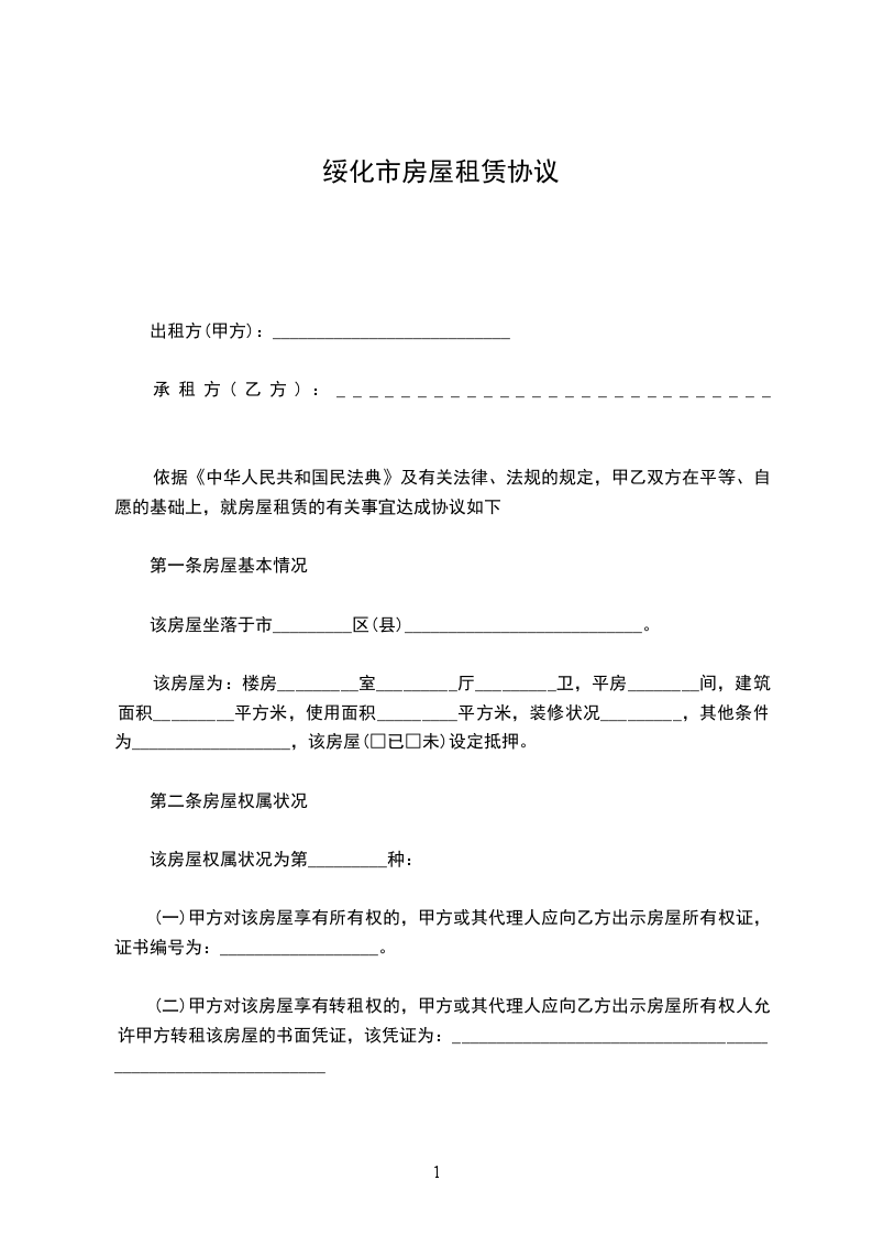 第一条:_________________房屋基本情况