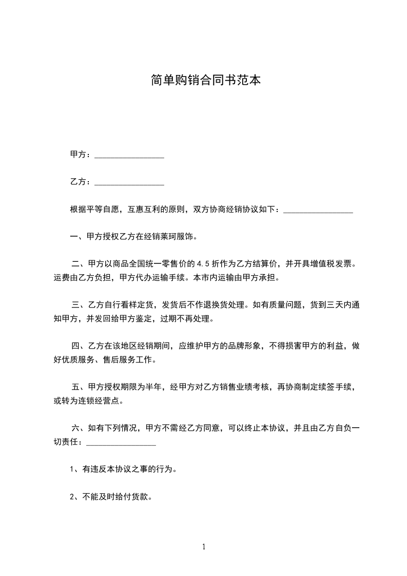 根据平等自愿,互惠互利的原则,双方协商经销协议如下:_________________