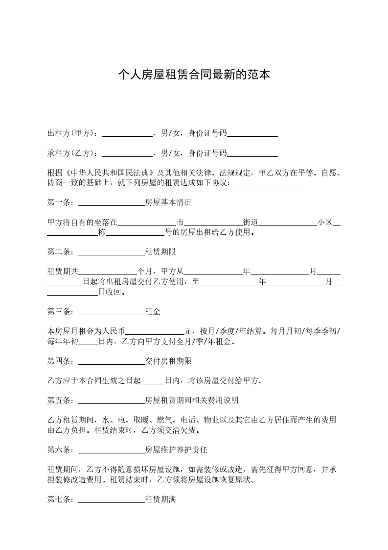 第七条:_________________租赁期满