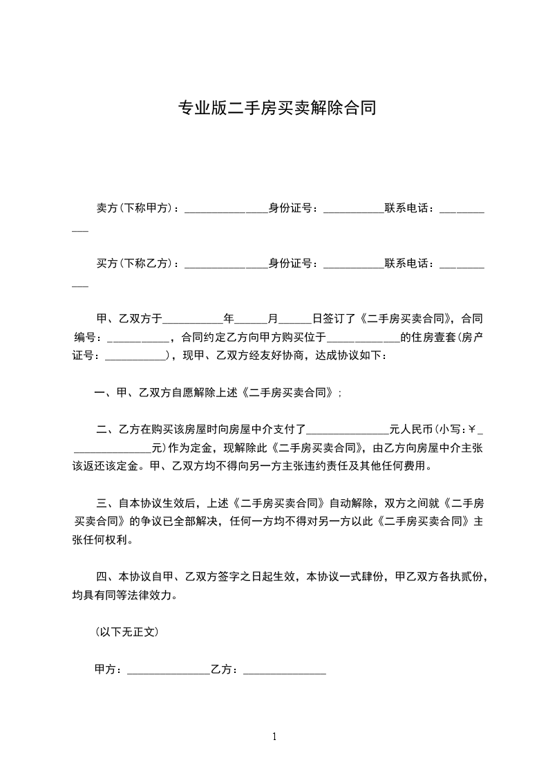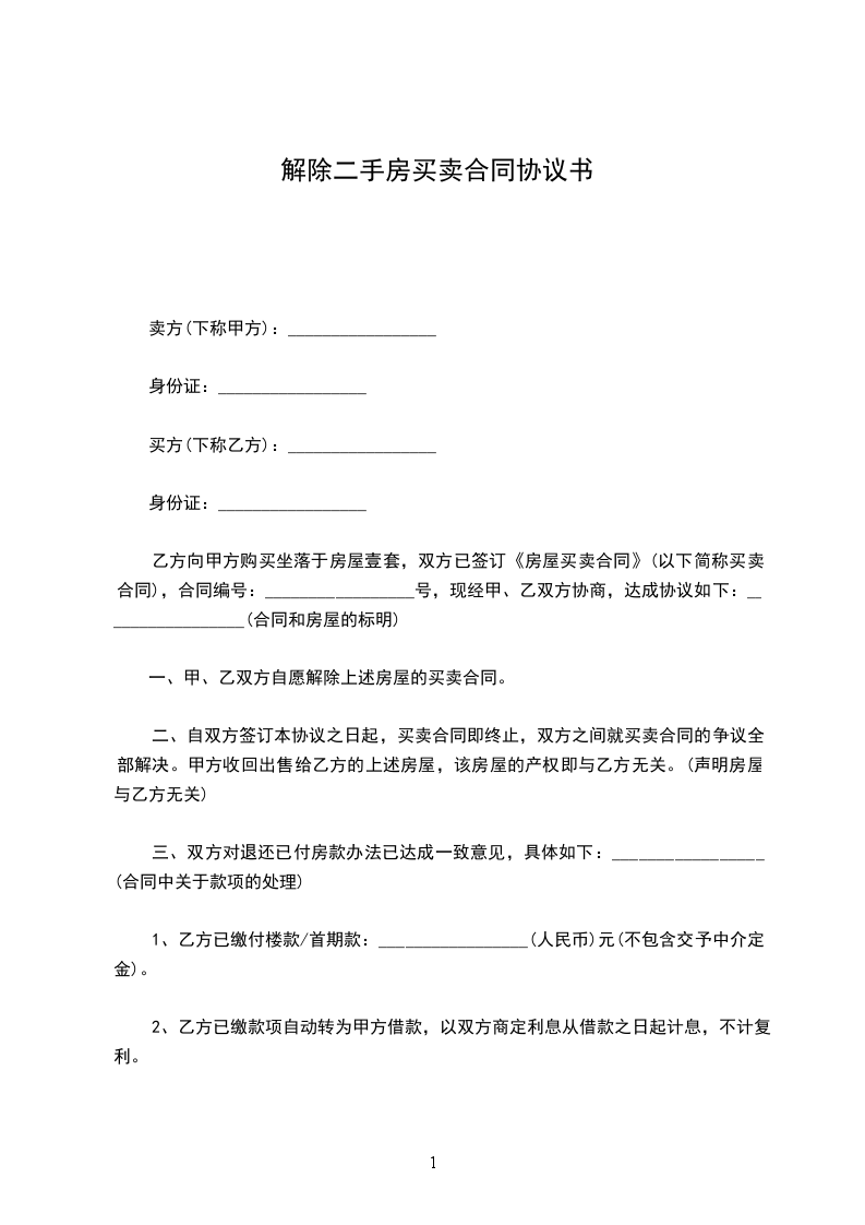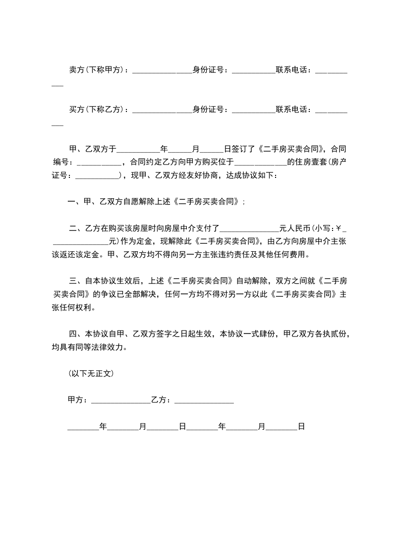 一、甲、乙双方自愿解除上述房屋的买卖合同。