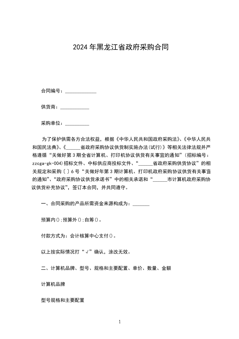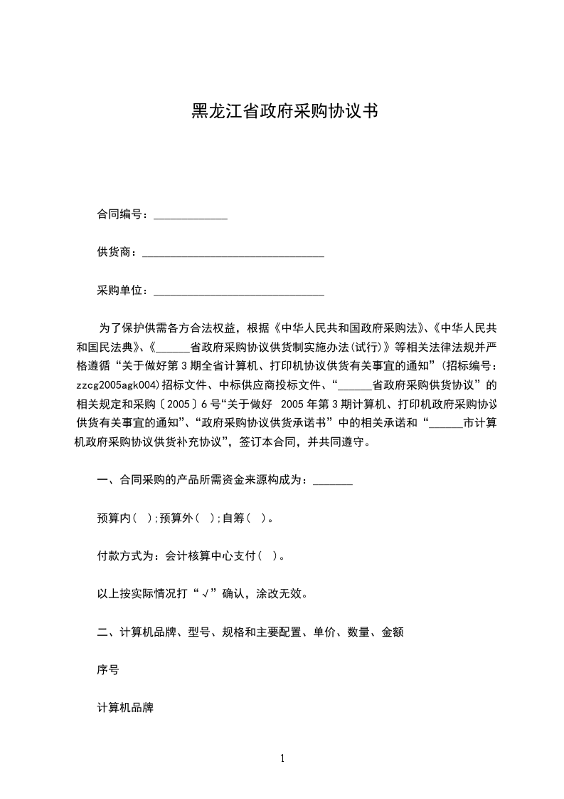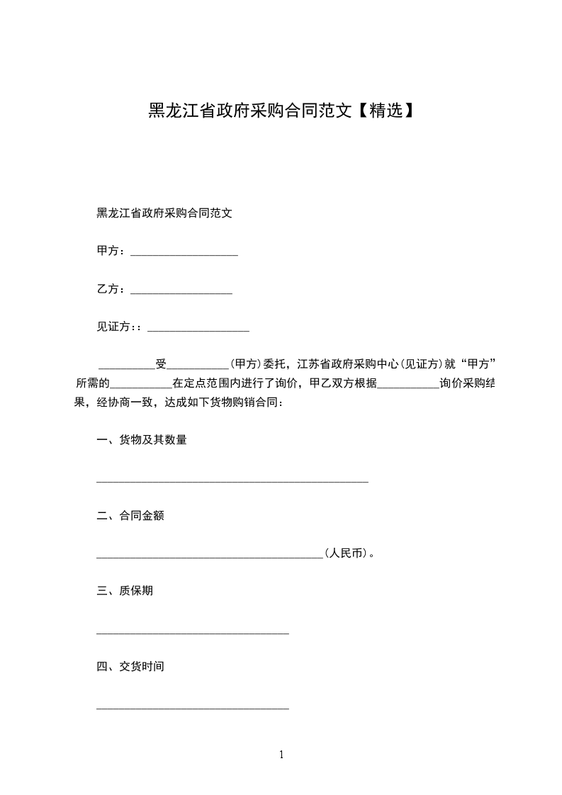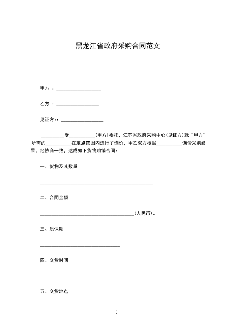 __________受___________(甲方)委托,江苏省政府采购中心(见证方)就“甲方”所需的___________在定点范围内进行了询价,甲乙双方根据___________询价采购结果,经协商一致,达成如下货物购销合同:
