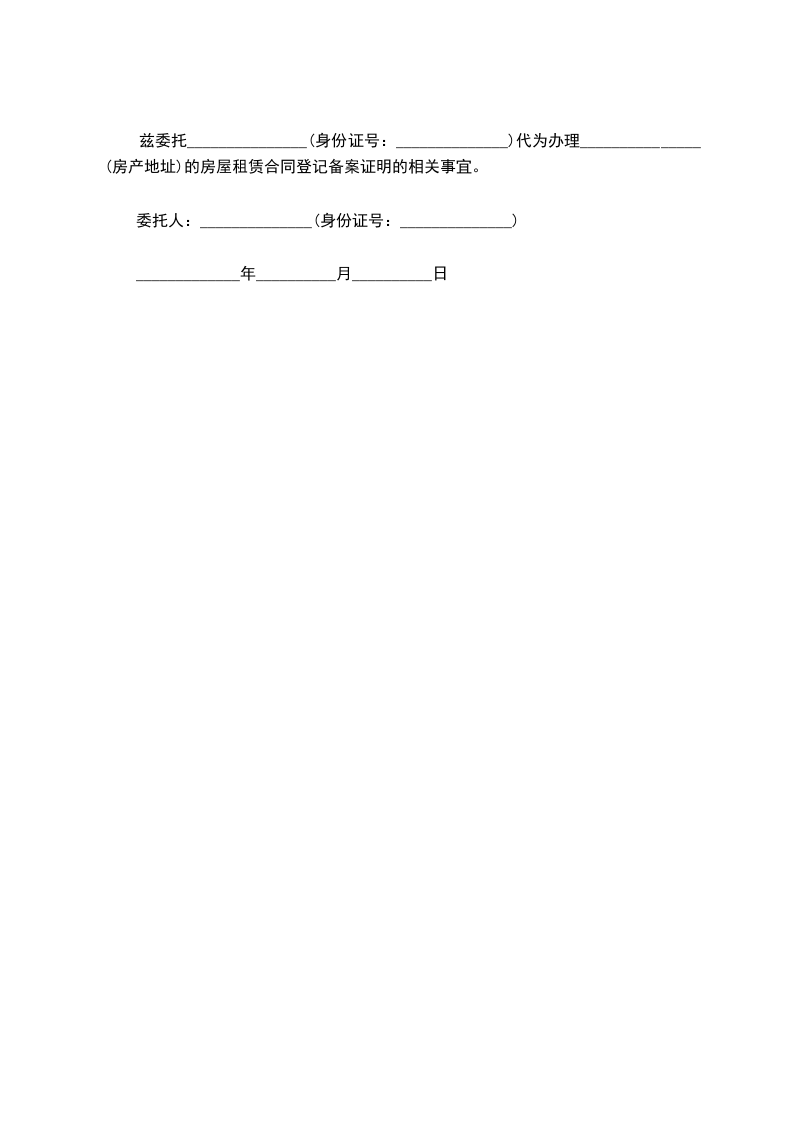 兹委托_______________(身份证号:______________)代为办理_______________(房产地址)的房屋租赁合同登记备案证明的相关事宜。