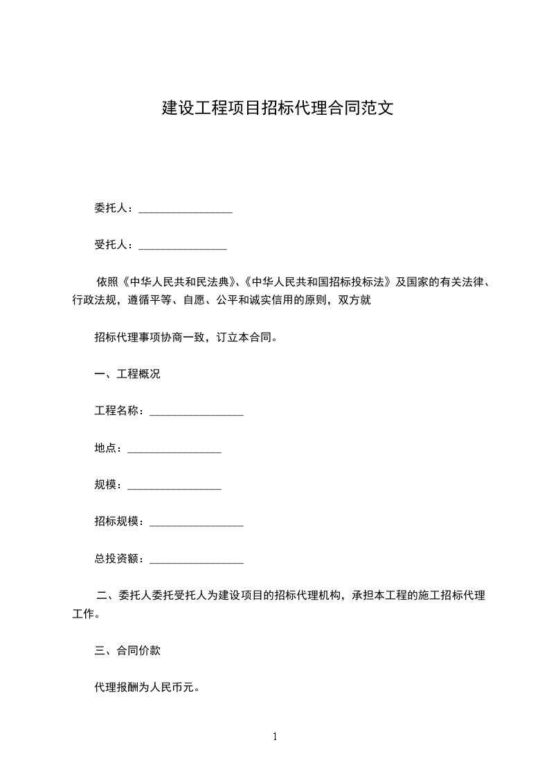 二、委托人委托受托人为建设项目的招标代理机构,承担本工程的施工招标代理工作。