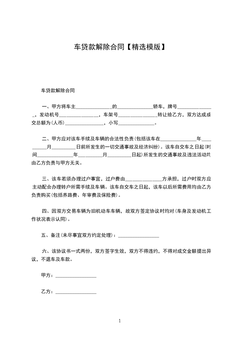 一、甲方将车主_______________的_______________轿车,牌号_______________,发动机号________________,车架号________________转让给乙方,双方达成成交总额为(人币)________________,小写_______________。