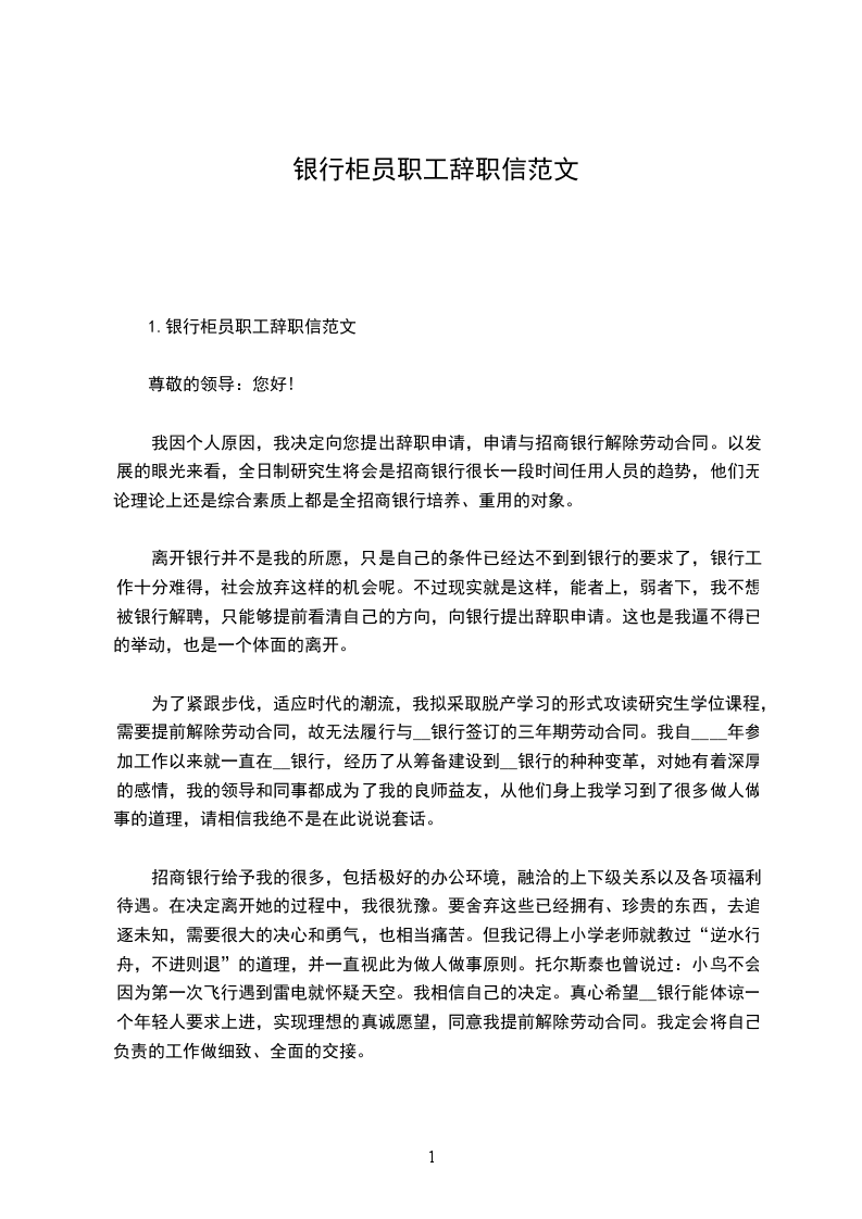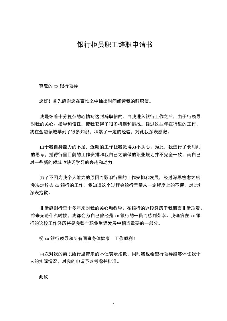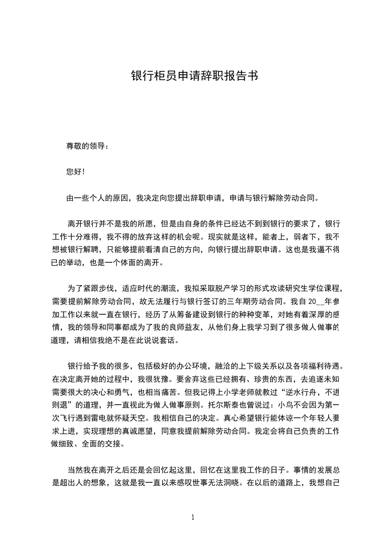 我是怀着十分复杂的心情写这封辞职信的。自我进入银行工作之后,由于行领导对我的关心、指导和信任,使我获得了很多机遇和挑战。经过这些年在行里的工作,我在金融领域学到了很多知识,积累了一定的经验,对此我深表感激。
