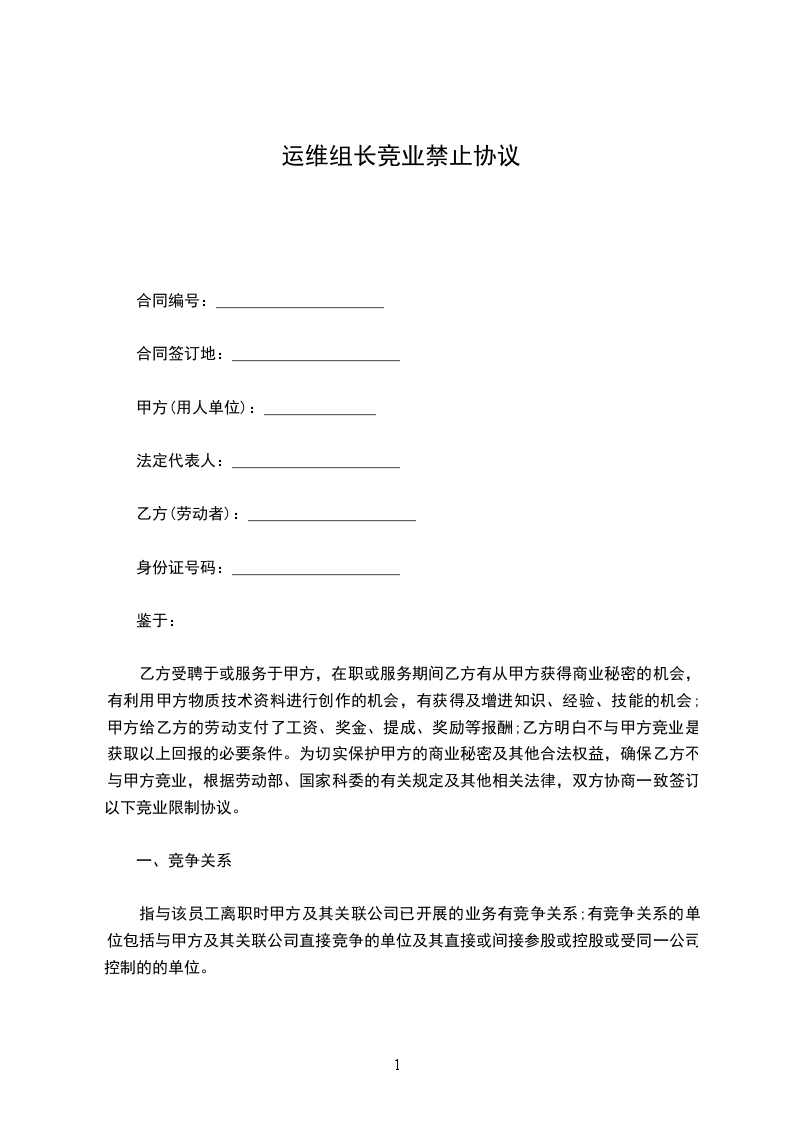 计算机和办公设备维修企业竞业禁止协议