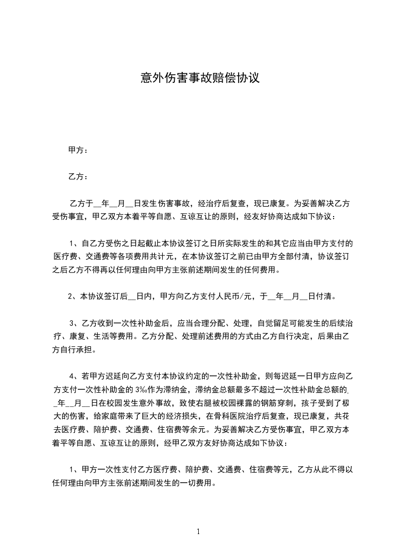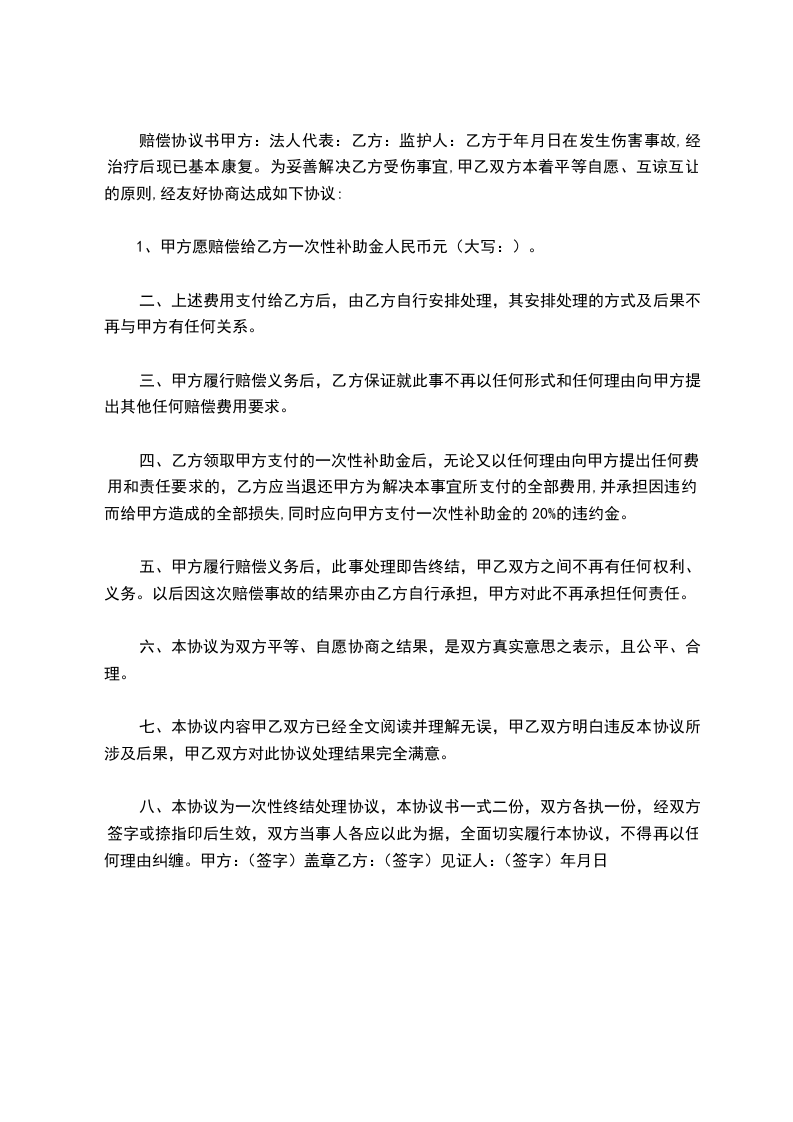 3、此解决为这次意外伤害事故的最终解决,XXX家不再从任何渠道要求其它补、赔偿;