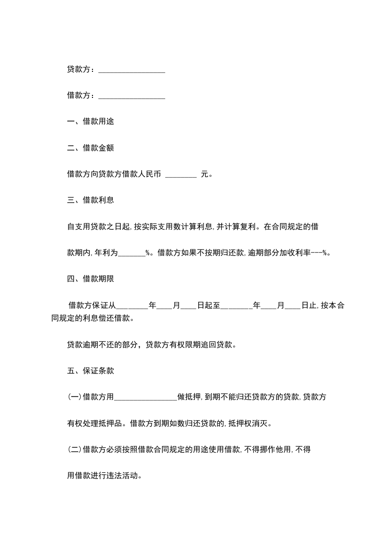 (一)借款方用________________做抵押,到期不能归还贷款方的贷款,贷款方