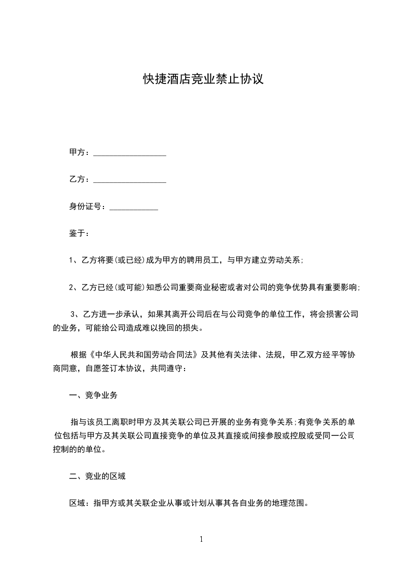 区域:指甲方或其关联企业从事或计划从事其各自业务的地理范围。