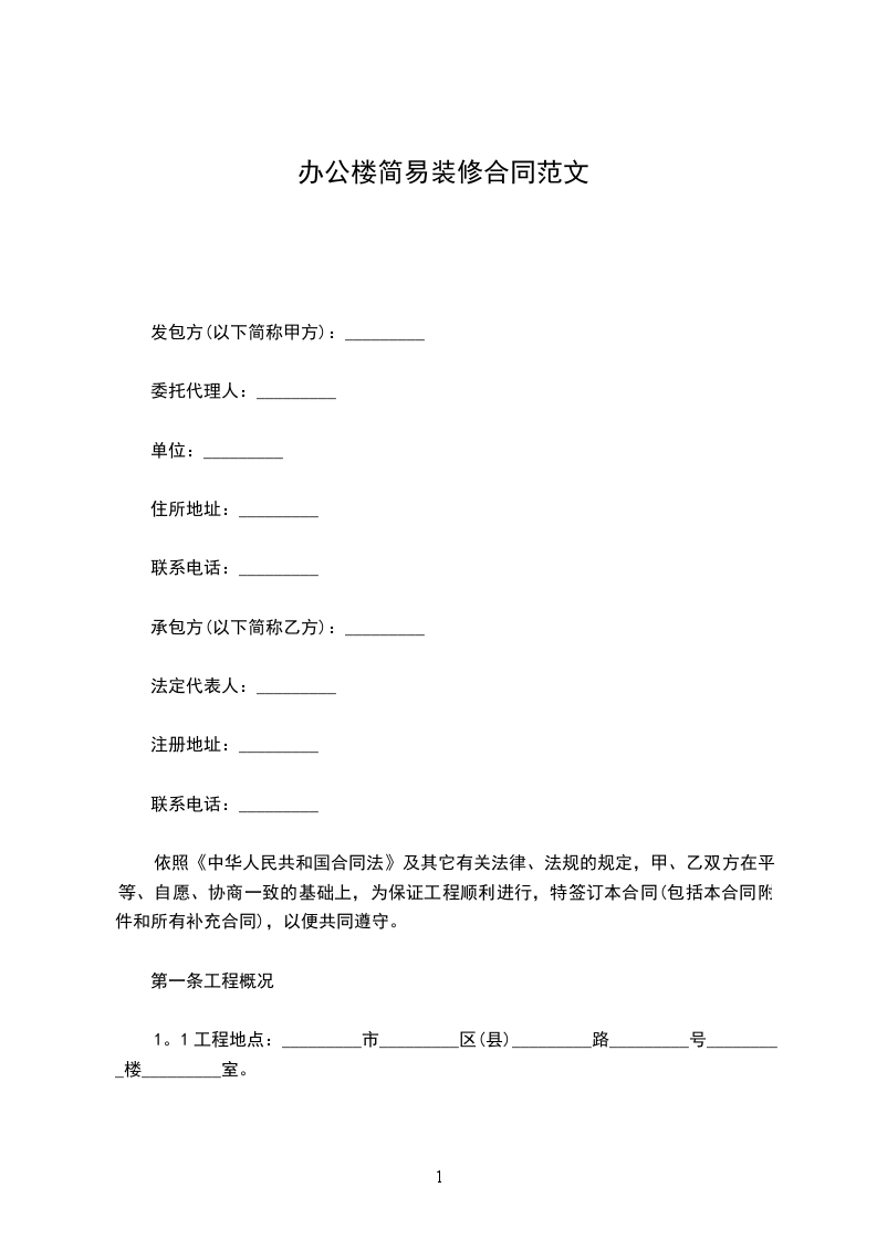 1。1工程地点:_________市_________区(县)_________路_________号_________楼_________室。