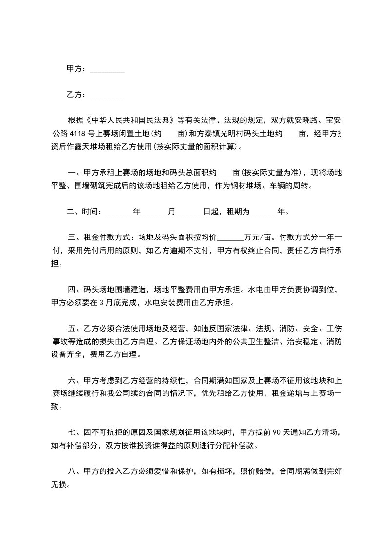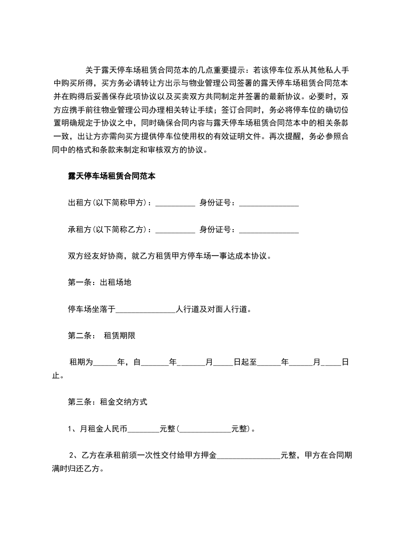 3、甲方所出租的场地,仅供乙方作停泊车辆使用,不作任何保管;如乙方所停泊的车辆有任何损失或被人为损坏的,一切后果由乙方自负。