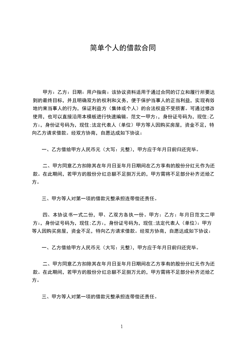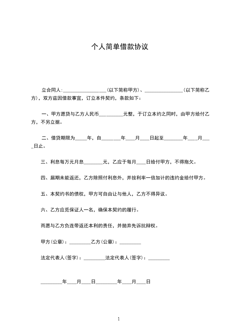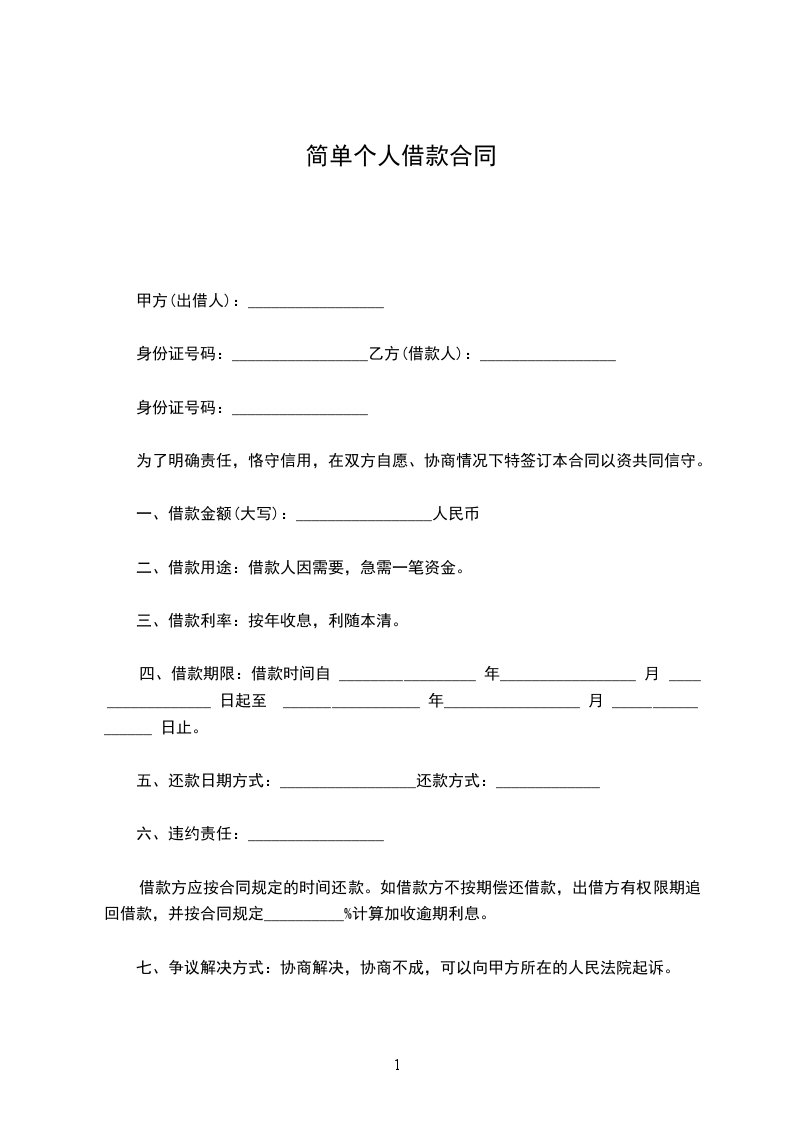 甲方(借款人):_________________乙方(出借人):_________________