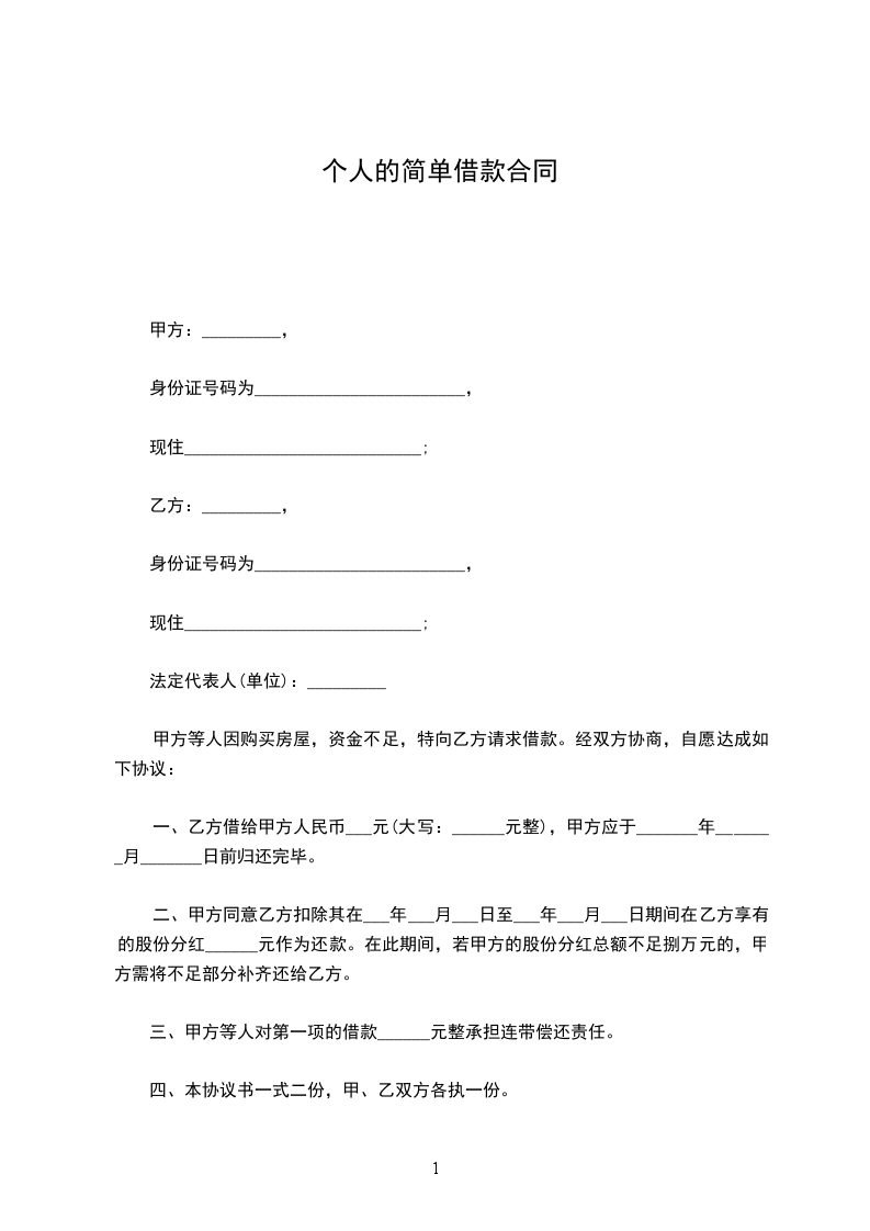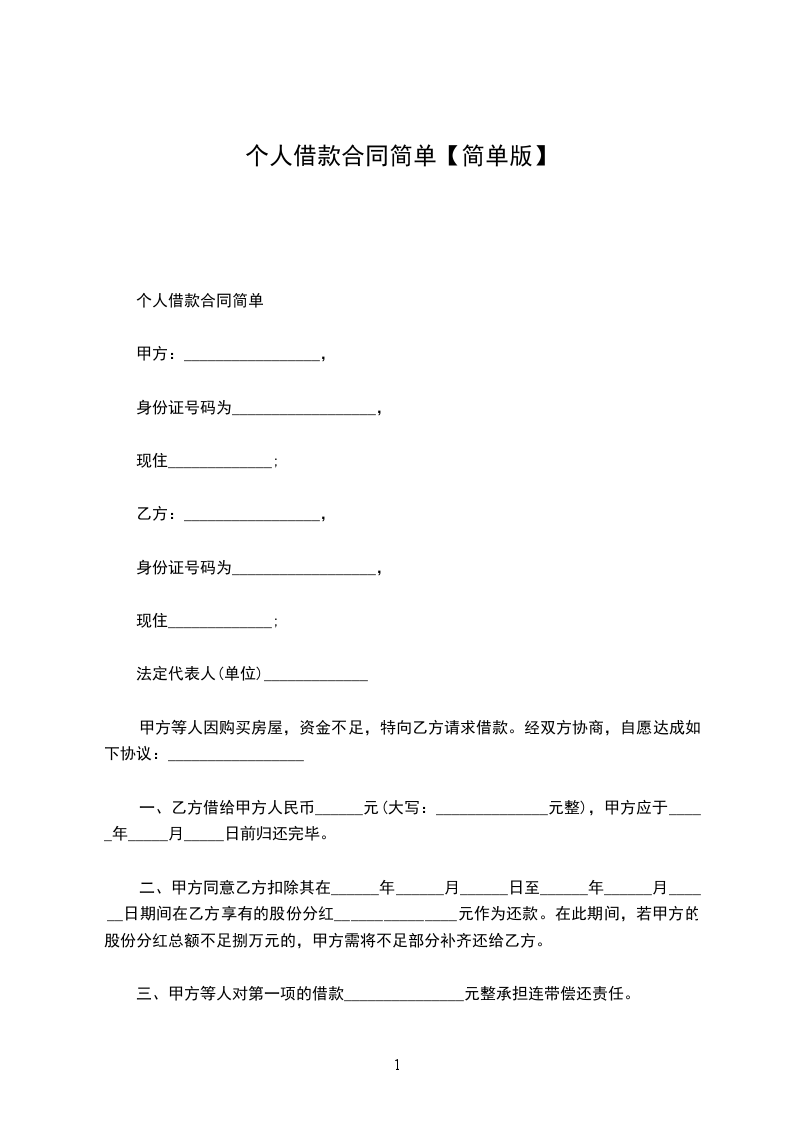 身份证号码:_________________乙方(借款人):_________________