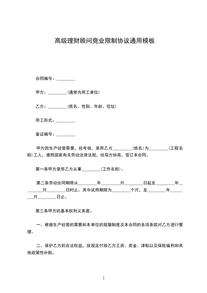 第一条甲方录用乙方从事_________(工作名称)。