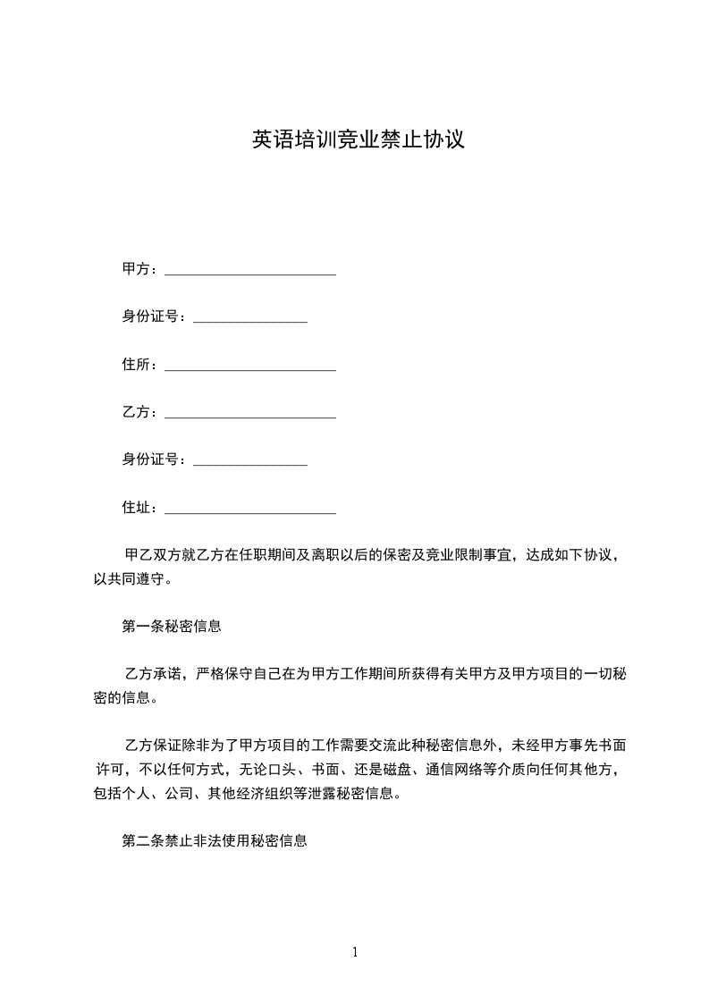 甲、乙双方本着平等、自愿、公平和诚实信用的原则,经协商一致,双方当事人就乙方在任职期间及离职以后保守甲方技术秘密和其他商业秘密、竞业限制的有关事项,订立下列条款共同遵守: