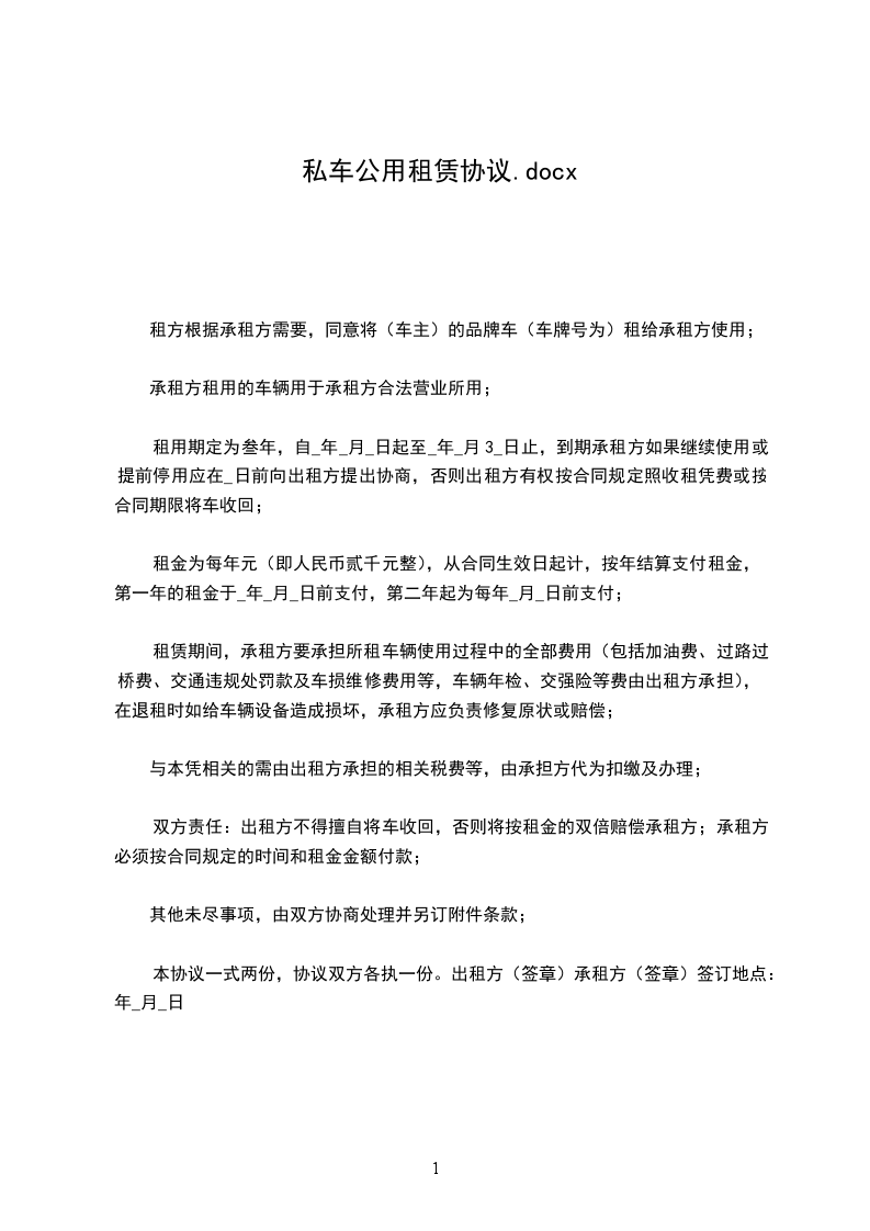 一、租车期限:从_____年_____月_____日起,到,按实际出动时间结算租车费用。