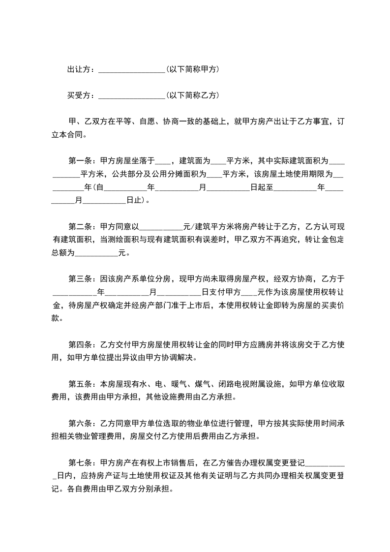 1、由于公司职工房产手续尚在集中管理中,自房屋交付至正式办理房产过户手续尚需一定时间,合同双方对此已有清醒认识,甲乙双方均不得以此为由提出变更和解除合同;