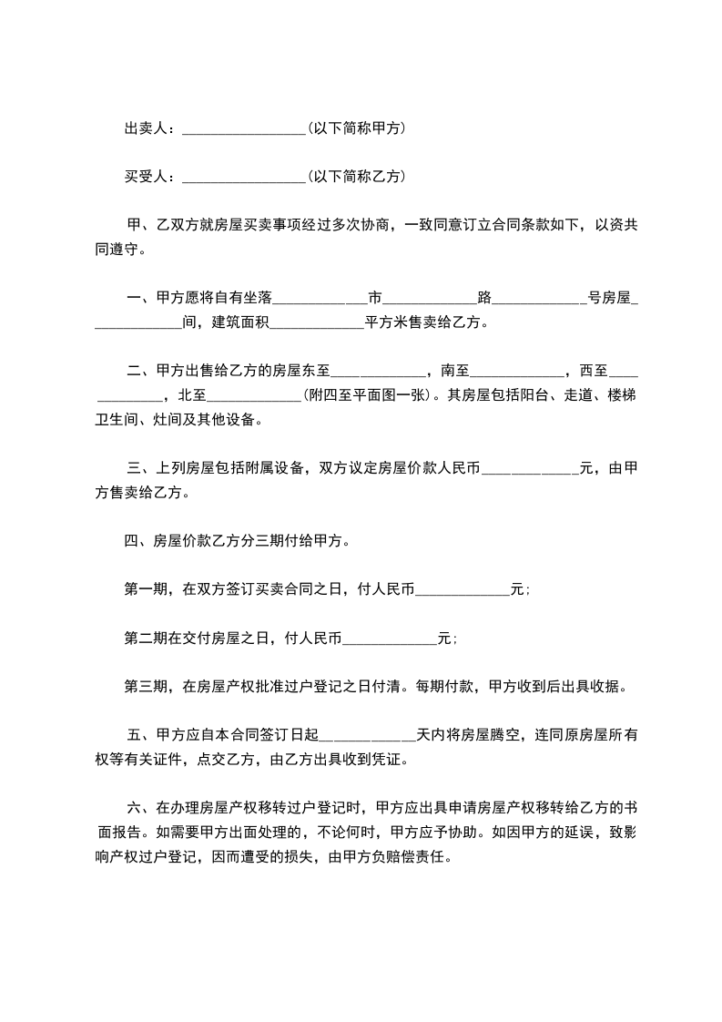 第八条:买卖双方约定的其他事项:在双方可以办理房产过户手续时,甲乙双方应另行签订一份房屋买卖合同报房产管理部门。