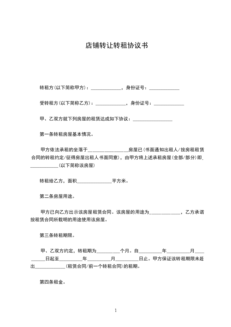 转租方(以下简称甲方):_____________,身份证号:_____________