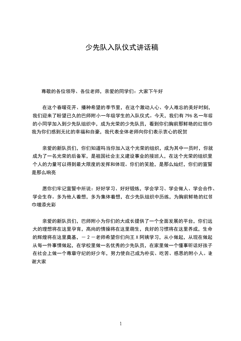 我叫XXX,是某某小学一年级六班的学生,我申请加入中国少年先锋队。少年先锋队是我们少年儿童的组织,红领巾是少先队的标志,我已经是一名小学生了,渴望成为一名优秀的少先队员,如果我戴上红领巾,我一定遵守少先队的章程,认真学习,发奋读书,做党的好孩子,为红领巾增添荣誉。