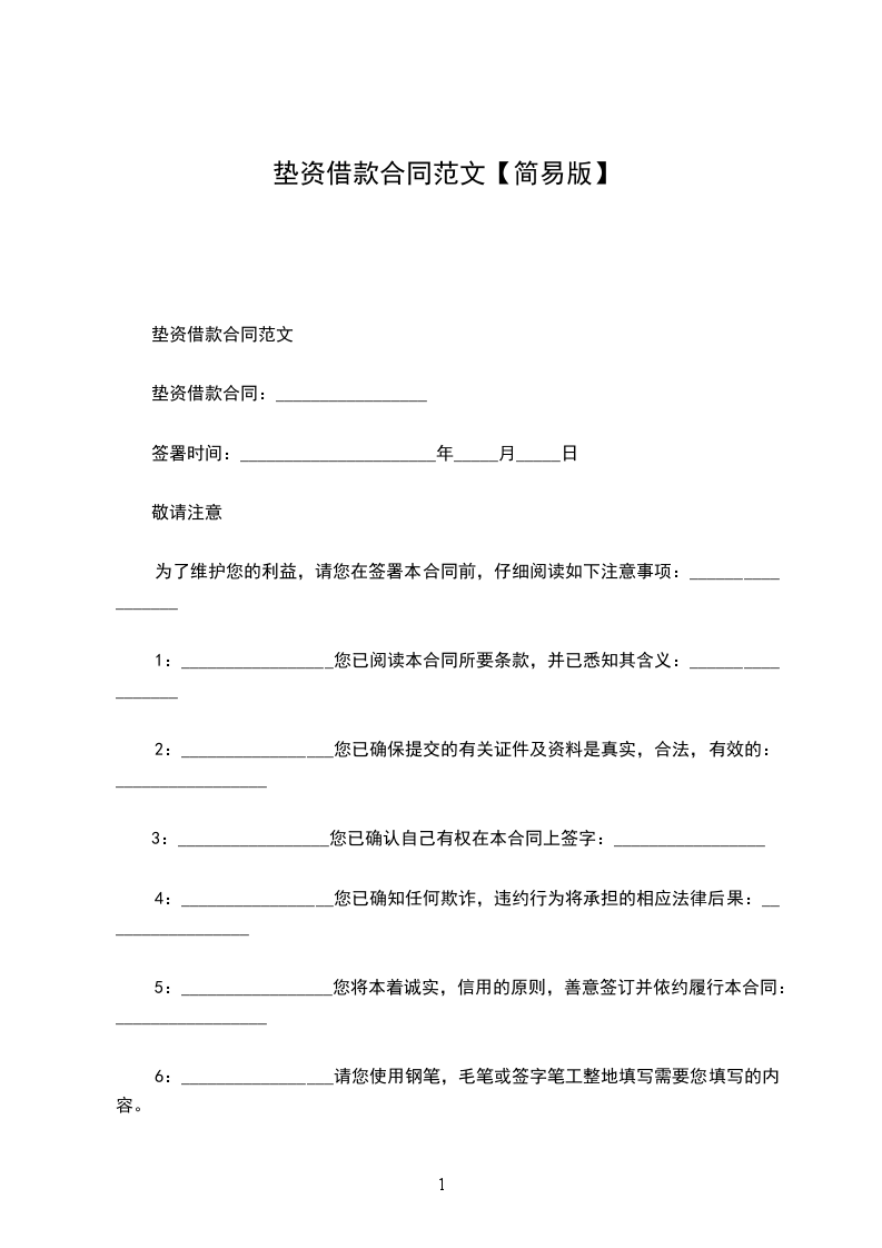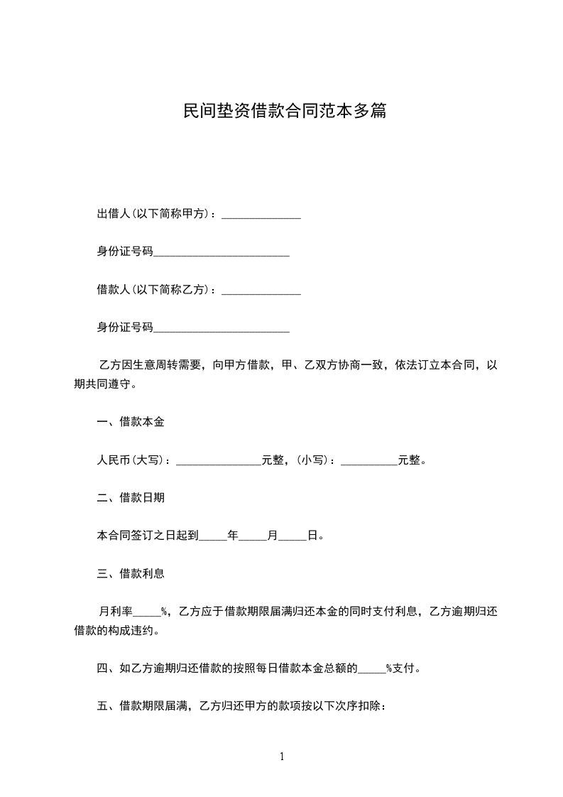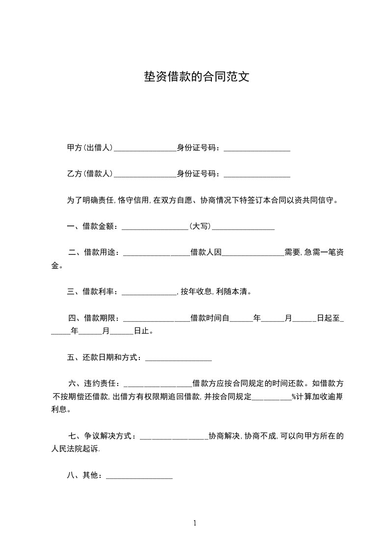 一、借款金额:_________________(大写)________________