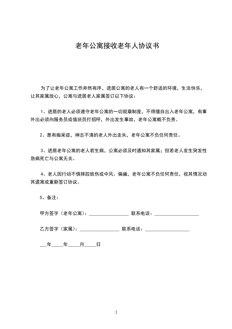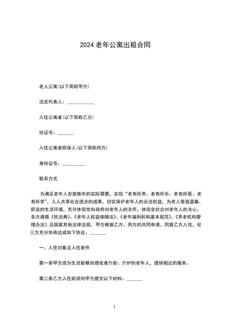 第一条甲方须为生活能够自理或者介助、介护的老年人,提供相应的服务。