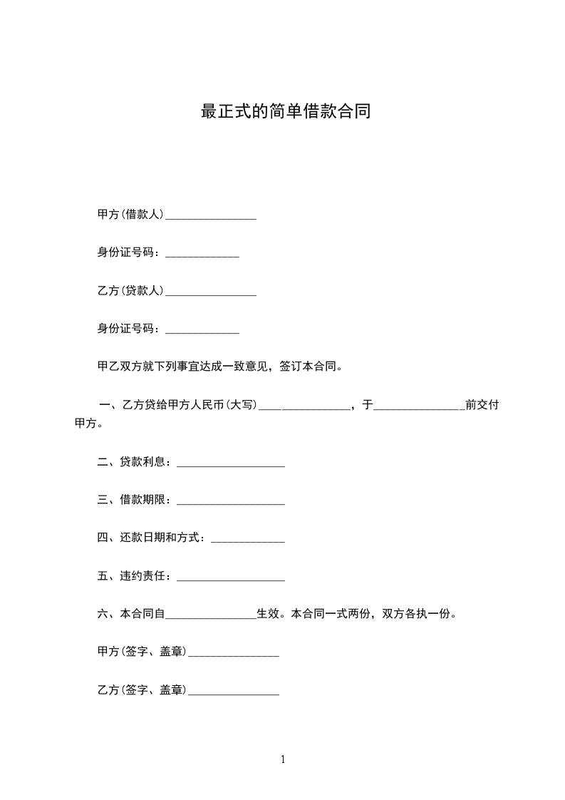 一、乙方贷给甲方人民币(大写)________________,于________________前交付甲方。