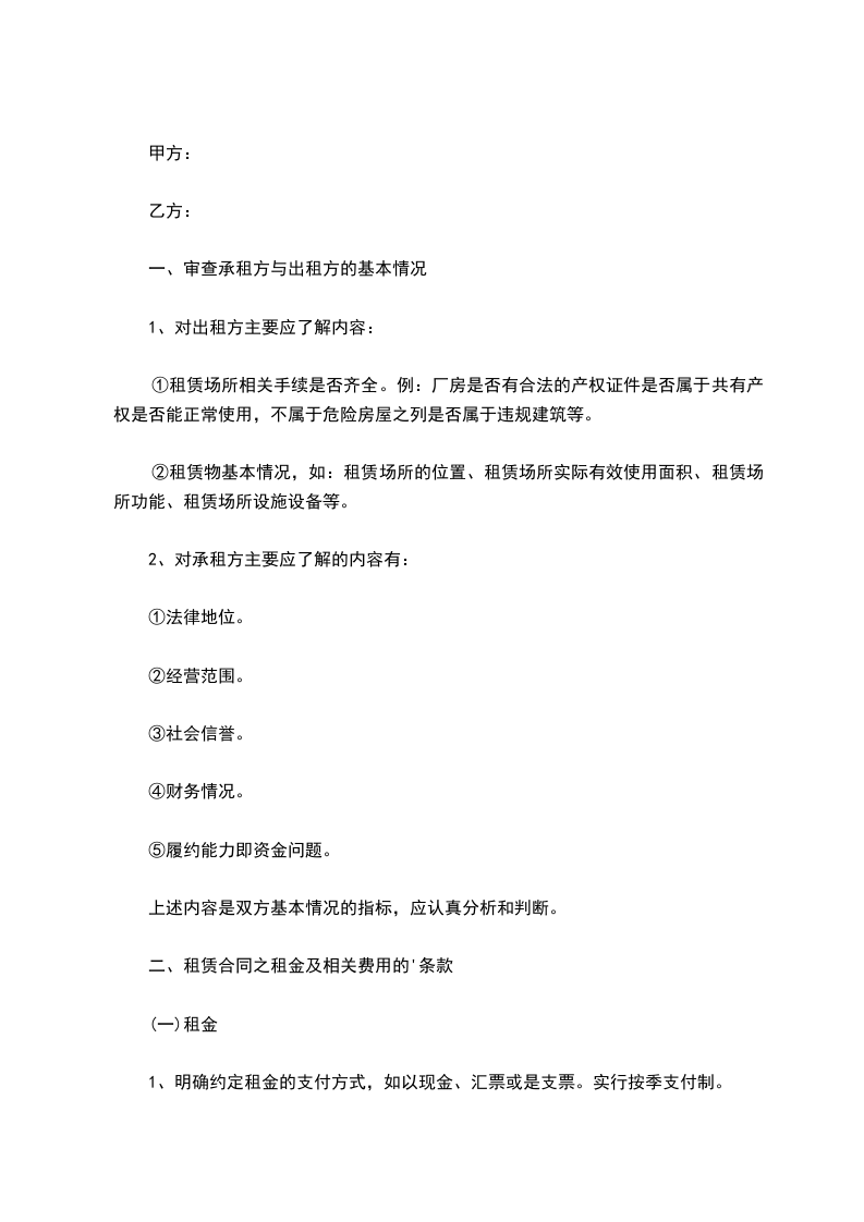 第三条:租金及支付方式
