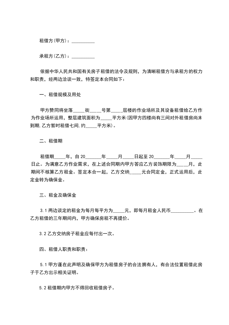 1.1乙方承租甲方位于房屋,房屋建筑面积平方米。
