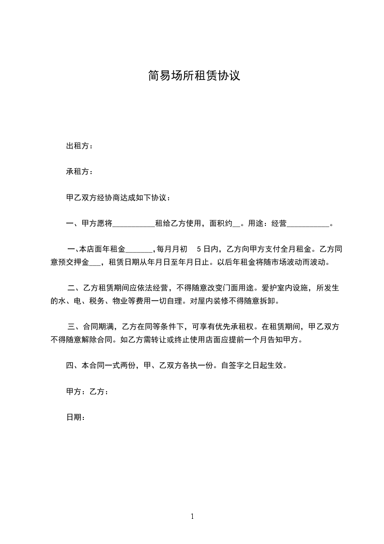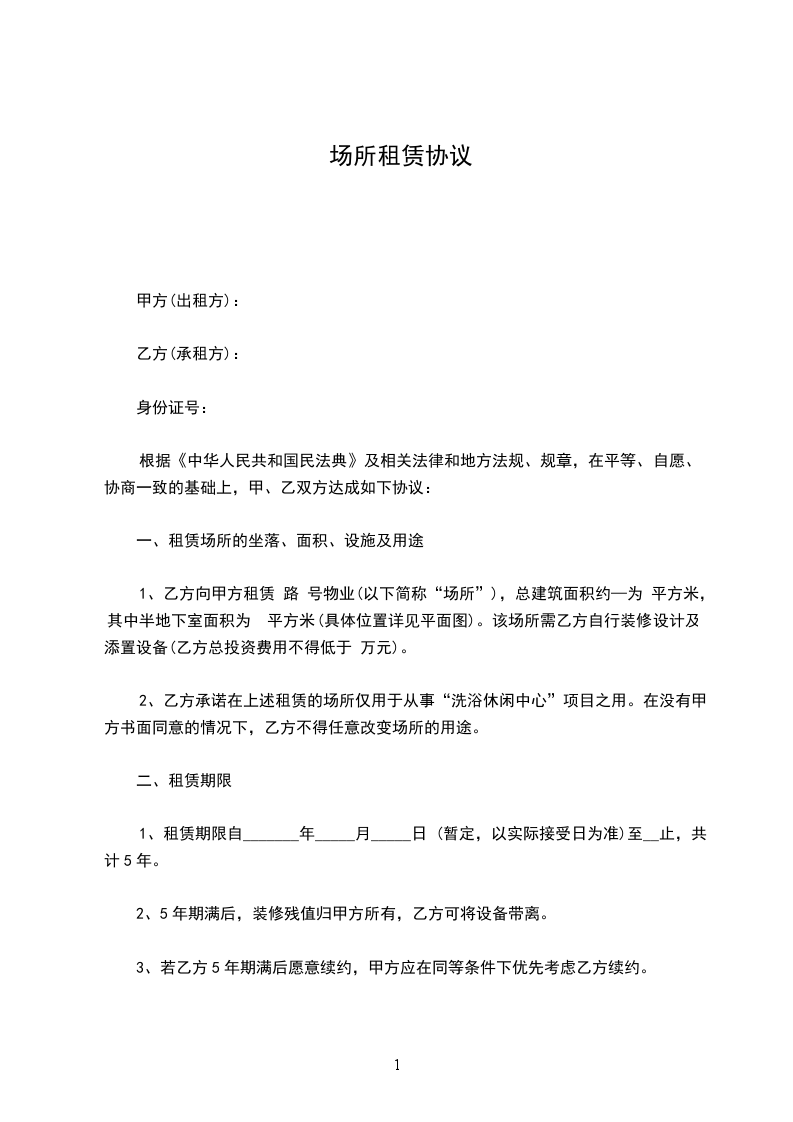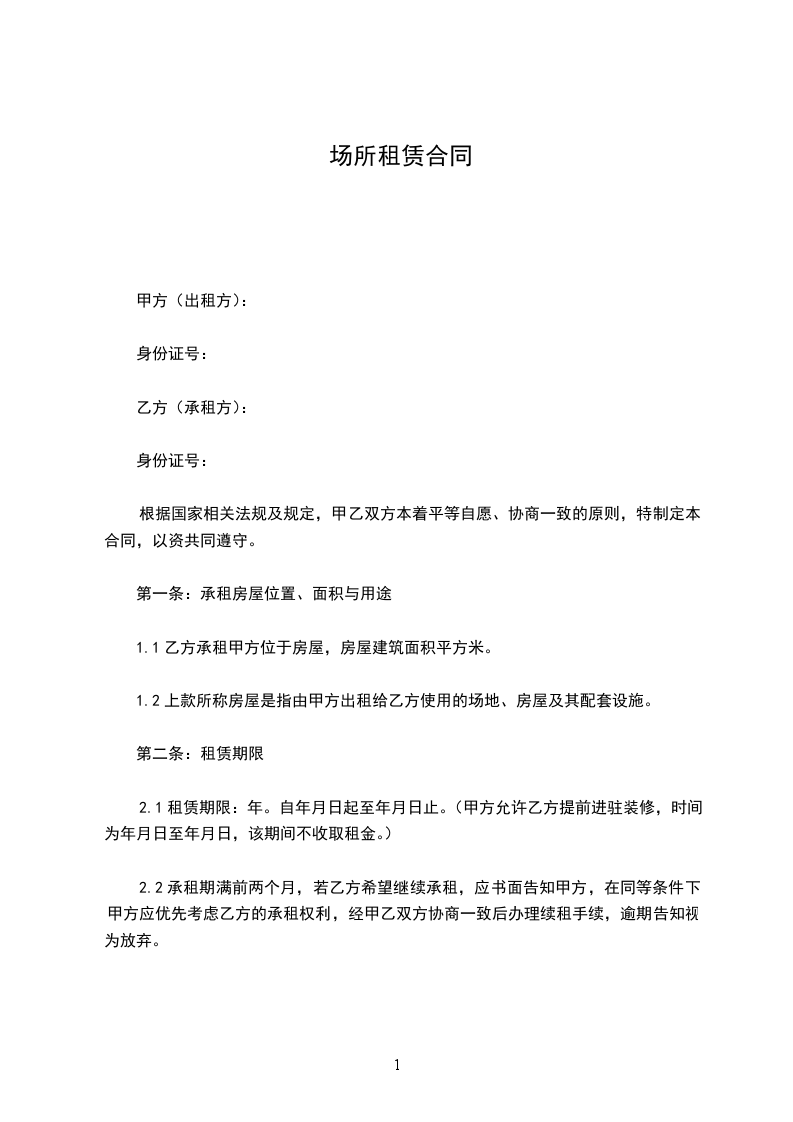 2.1租赁期限:年。自_____年_____月_____日起至_____年_____月_____日止。(甲方允许乙方提前进驻装修,时间为_____年_____月_____日至_____年_____月_____日,该期间不收取租金。)