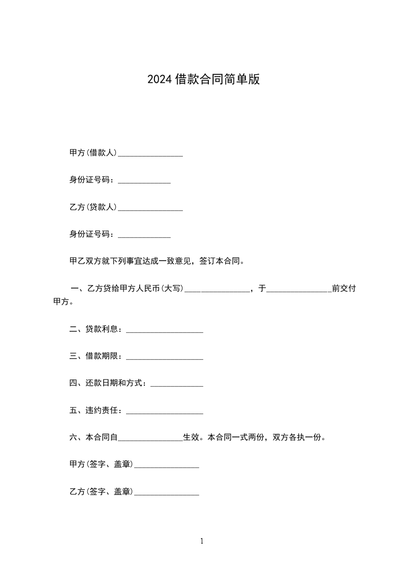 一、乙方贷给甲方人民币(大写)________________,于________________前交付甲方。