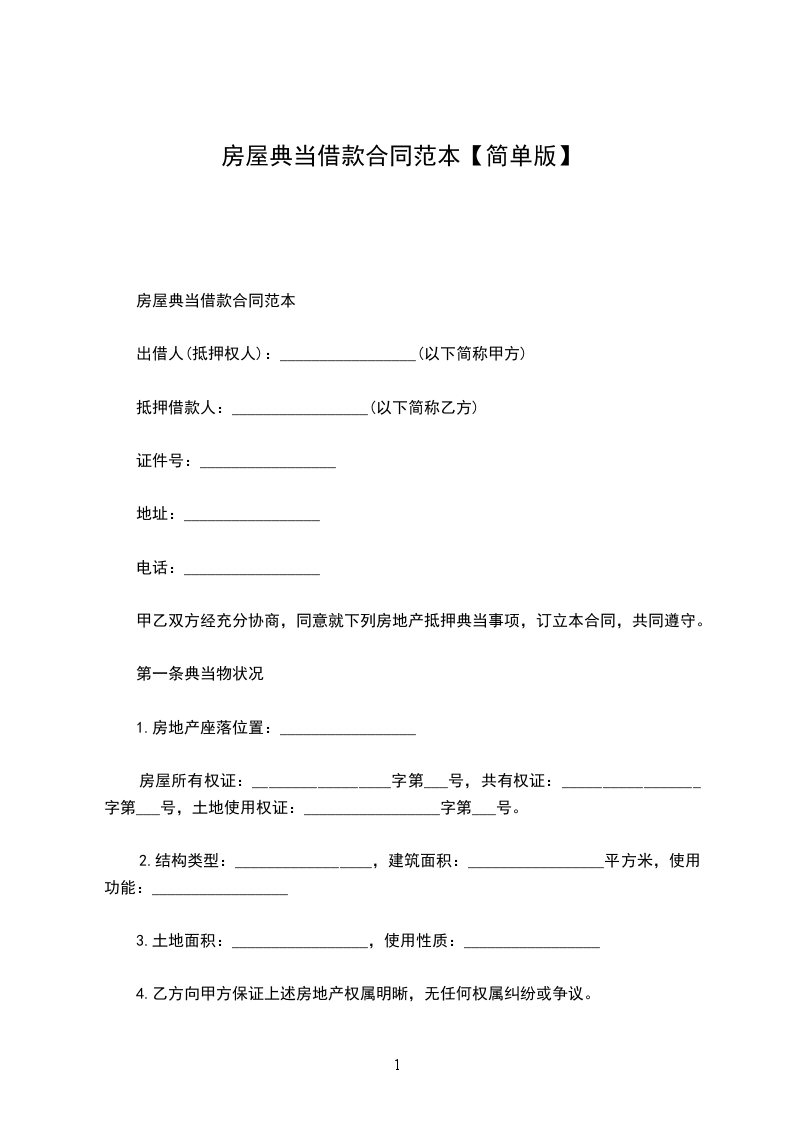 甲乙双方经充分协商,同意就下列房地产抵押典当事项,订立本合同,共同遵守。