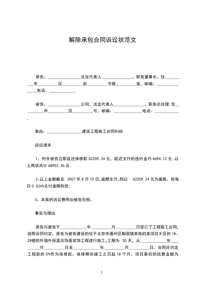 1、判令被告立即返还保修款62259.24元,延迟支付的违约金巧6694.12元;以上两项共计68953.36元;