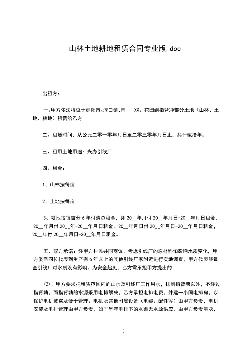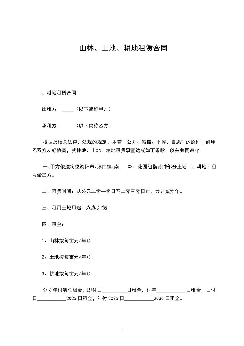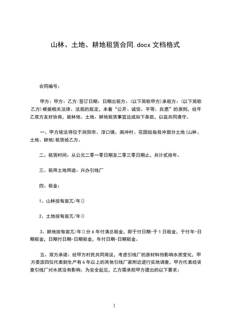 根据国家有关规定,甲、乙双方在自愿、平等、互利的基础上就甲方将其合法拥有的土地租赁给乙方使用的有关事宜,双方达成协议并签定租赁合同如下:_________________