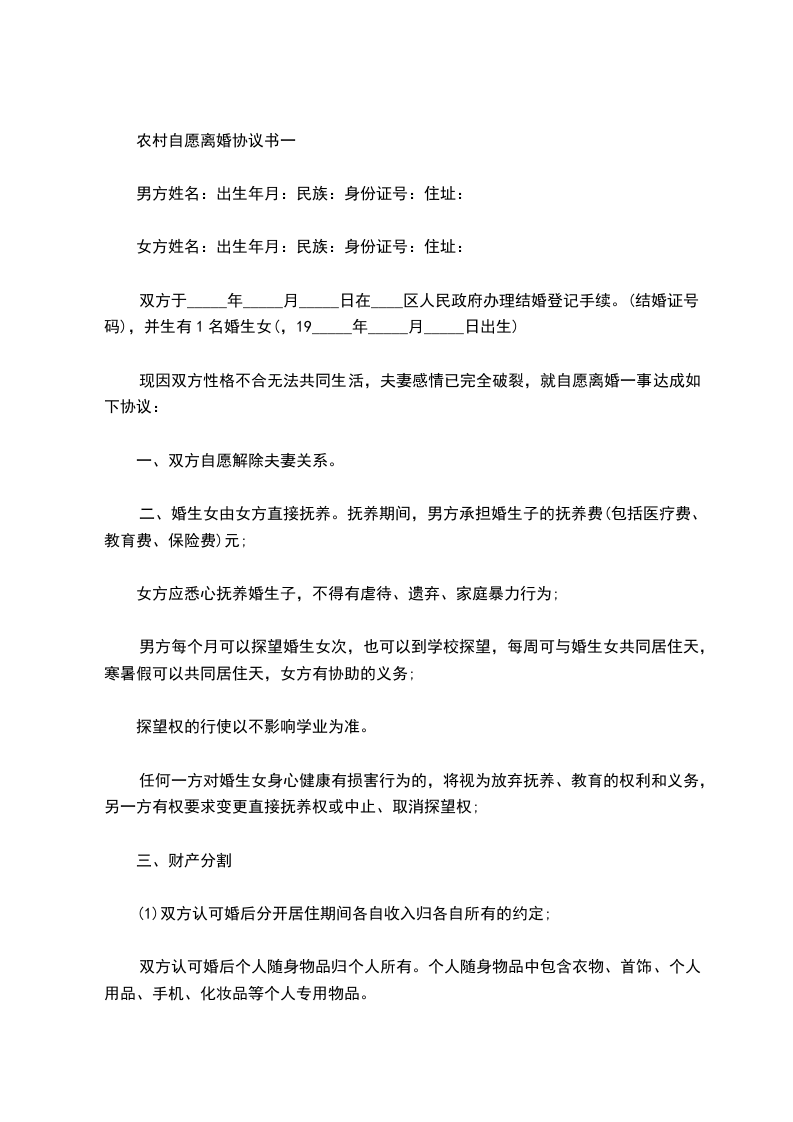 现因双方性格不合无法共同生活,夫妻感情已完全破裂,就自愿离婚一事达成如下协议: