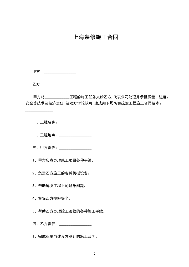 1、甲方负责办理施工项目各种手续。