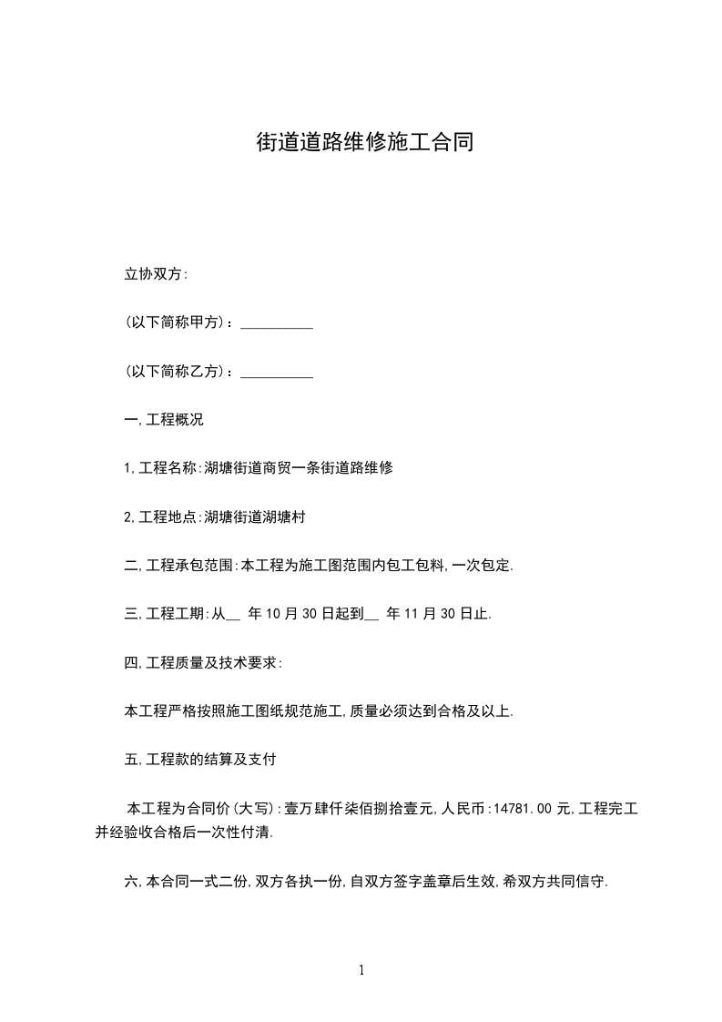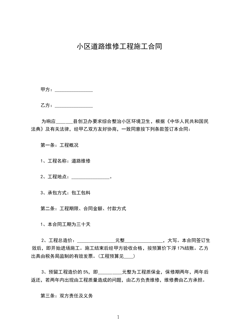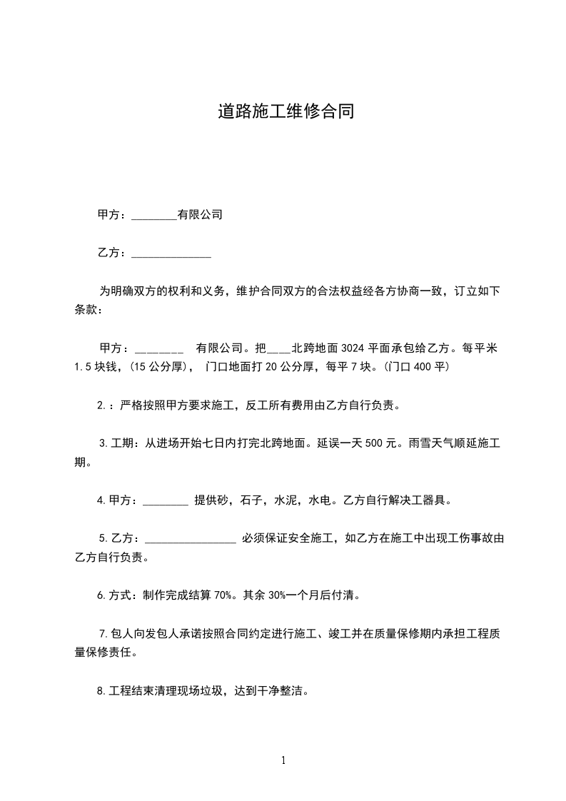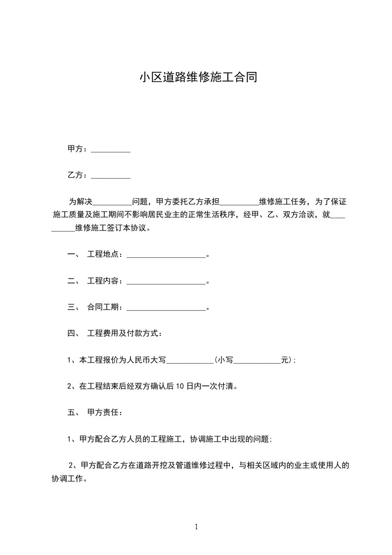 由于今年雨水较多,镇内南环路保民到共合段2.6公里道路损毁严重,为了方便交通,保持通车顺畅,甲方将该路段的维修事务承包给乙方,为明确双方的权利和义务,双方特签订以下条款,遵守并执行。