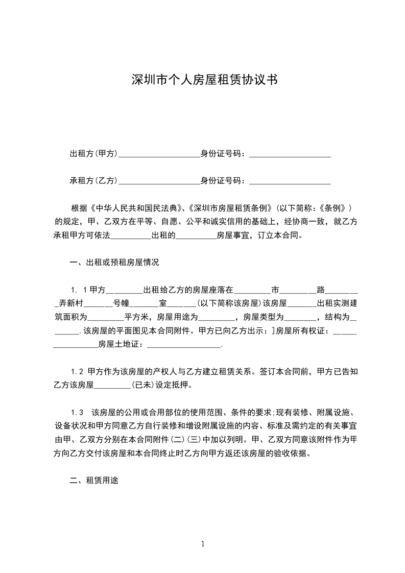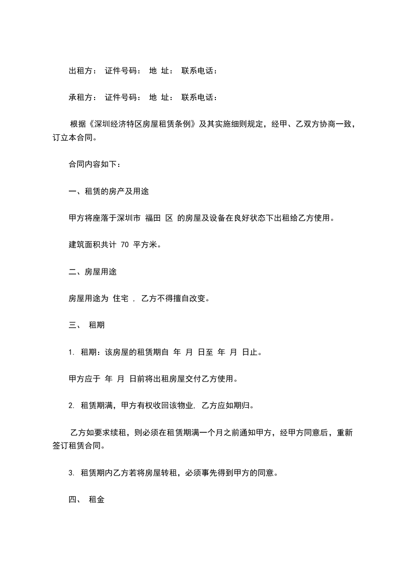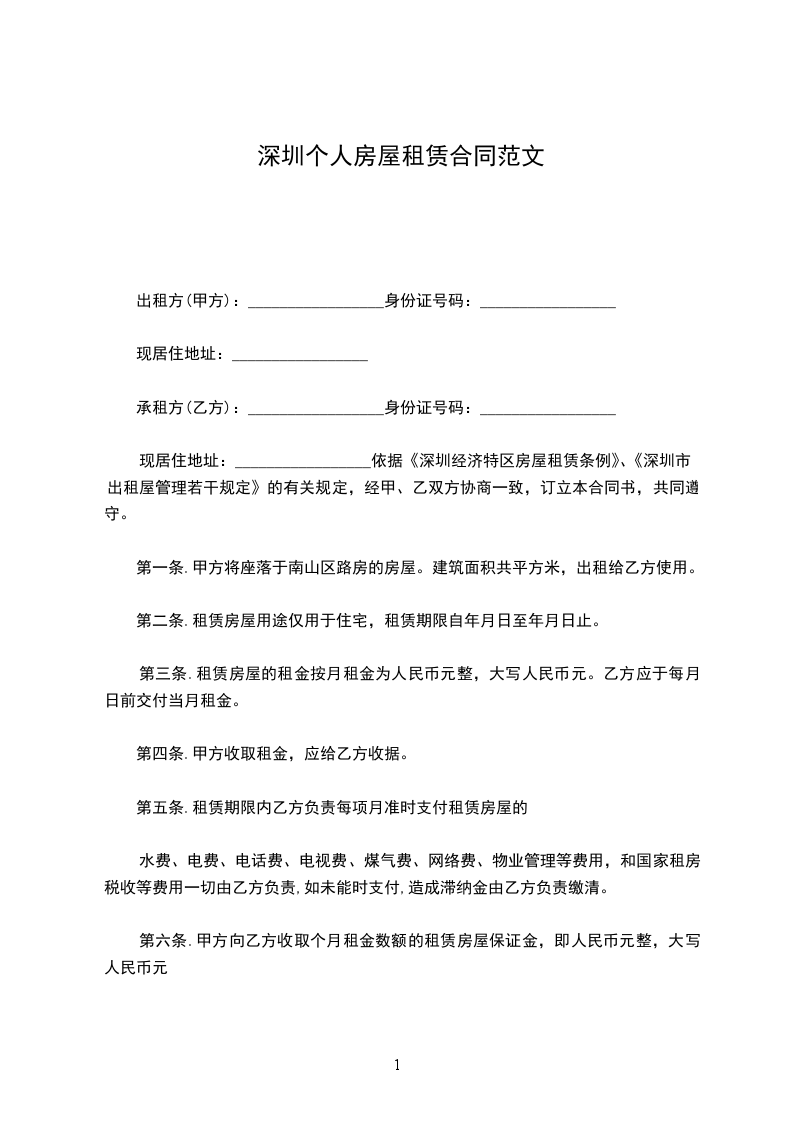 现居住地址:_________________依据《深圳经济特区房屋租赁条例》、《深圳市出租屋管理若干规定》的有关规定,经甲、乙双方协商一致,订立本合同书,共同遵守。