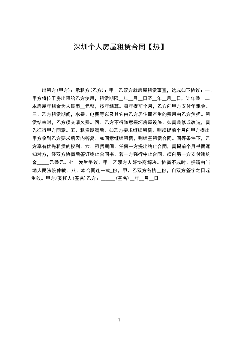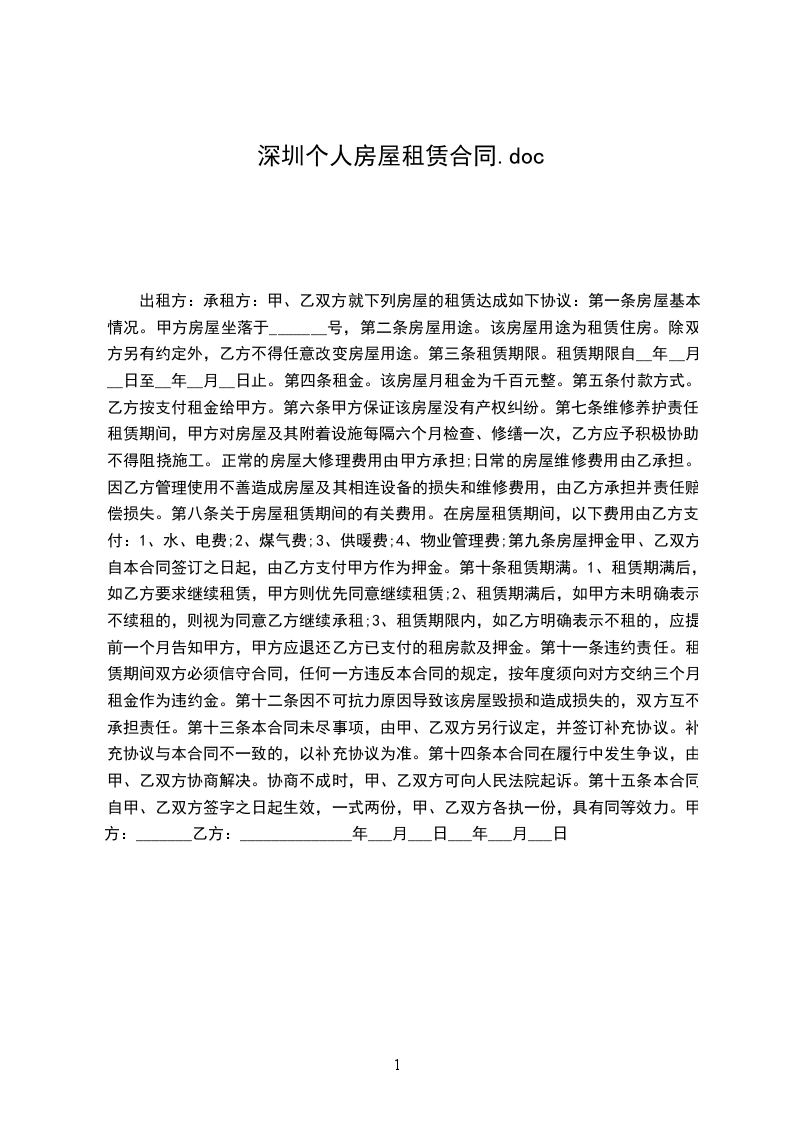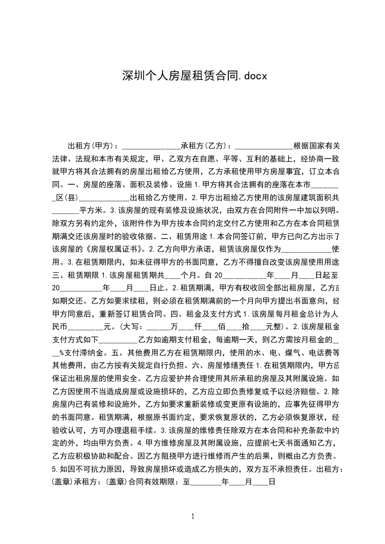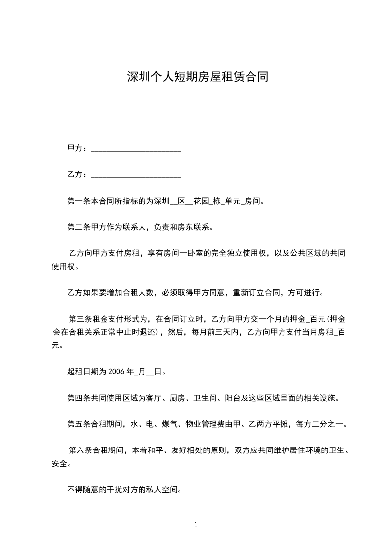 现居住地址:_________________依据《深圳经济特区房屋租赁条例》、《深圳市出租屋管理若干规定》的有关规定,经甲、乙双方协商一致,订立本合同书,共同遵守。